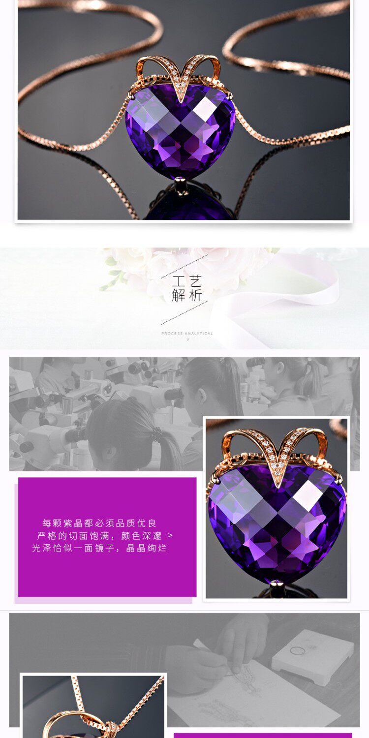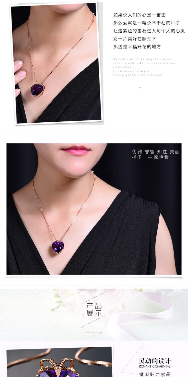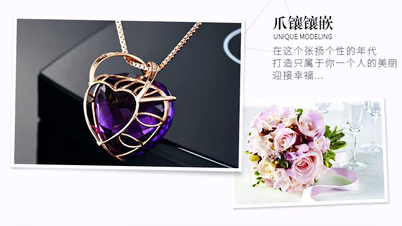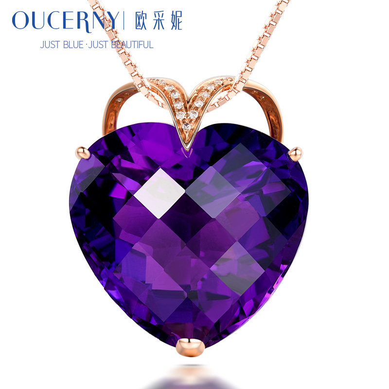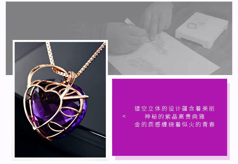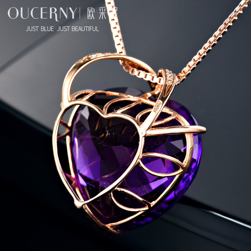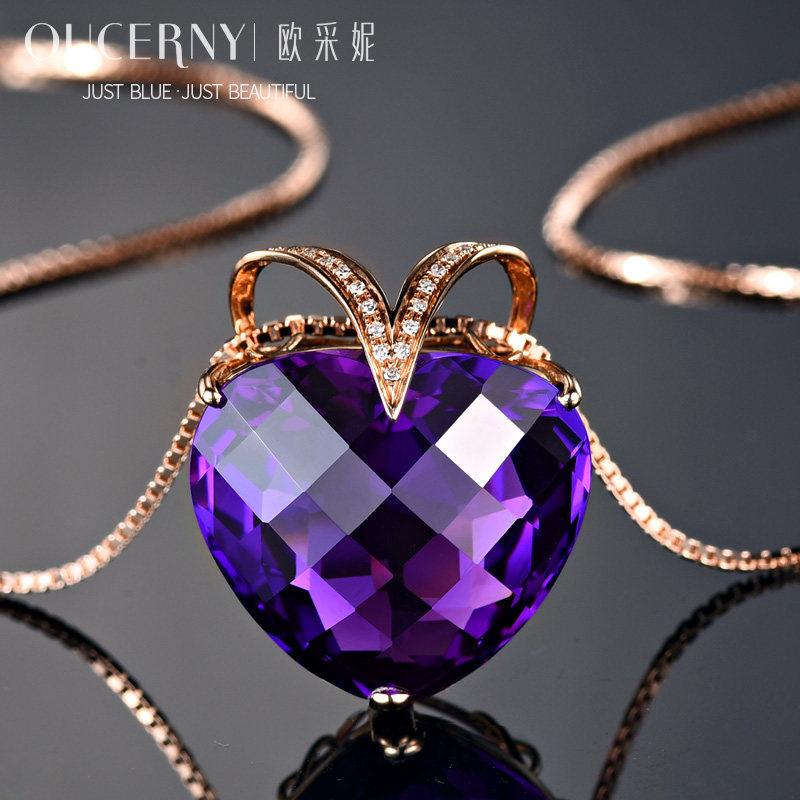 Натуральная подвеска из кварца с аметистом, золотая инкрустация камня, 18 карат, розовое золото, с драгоценным камнем, женский стиль
