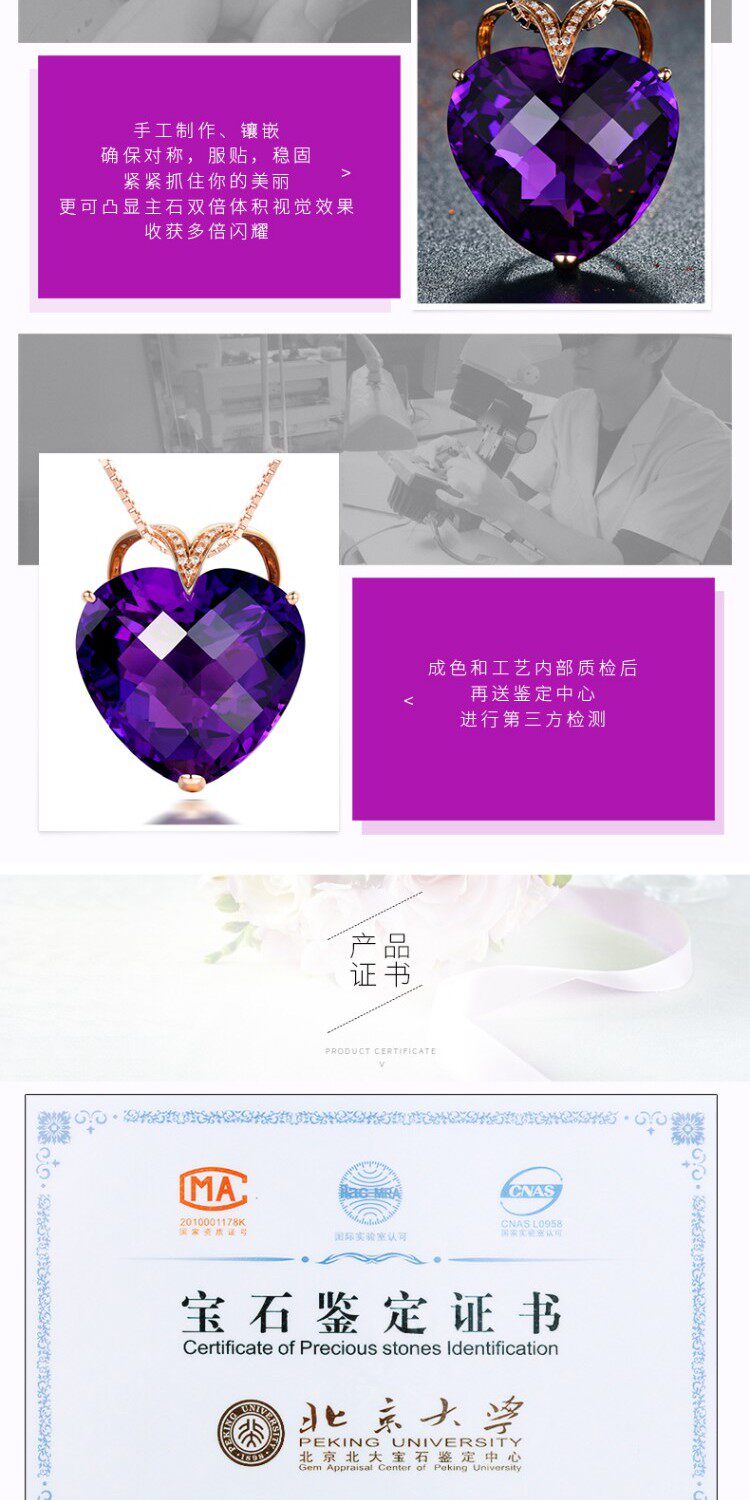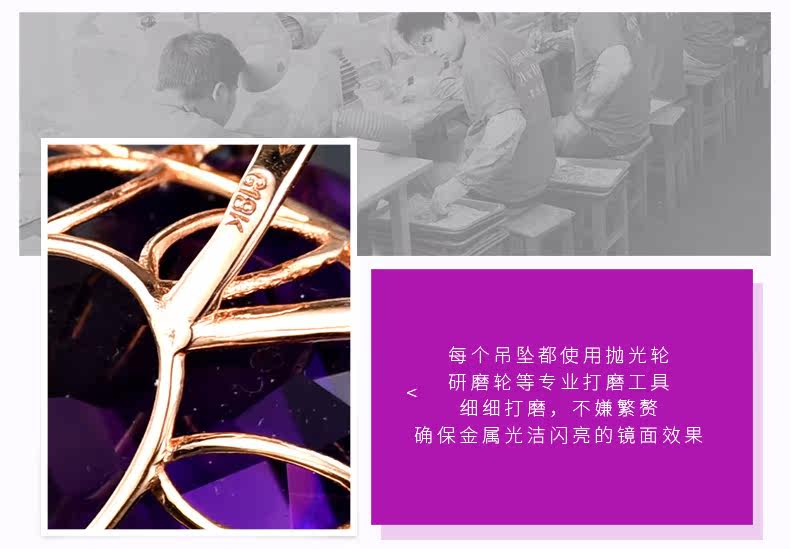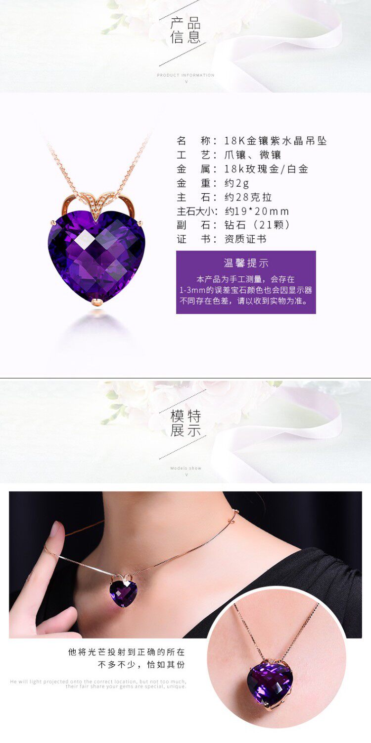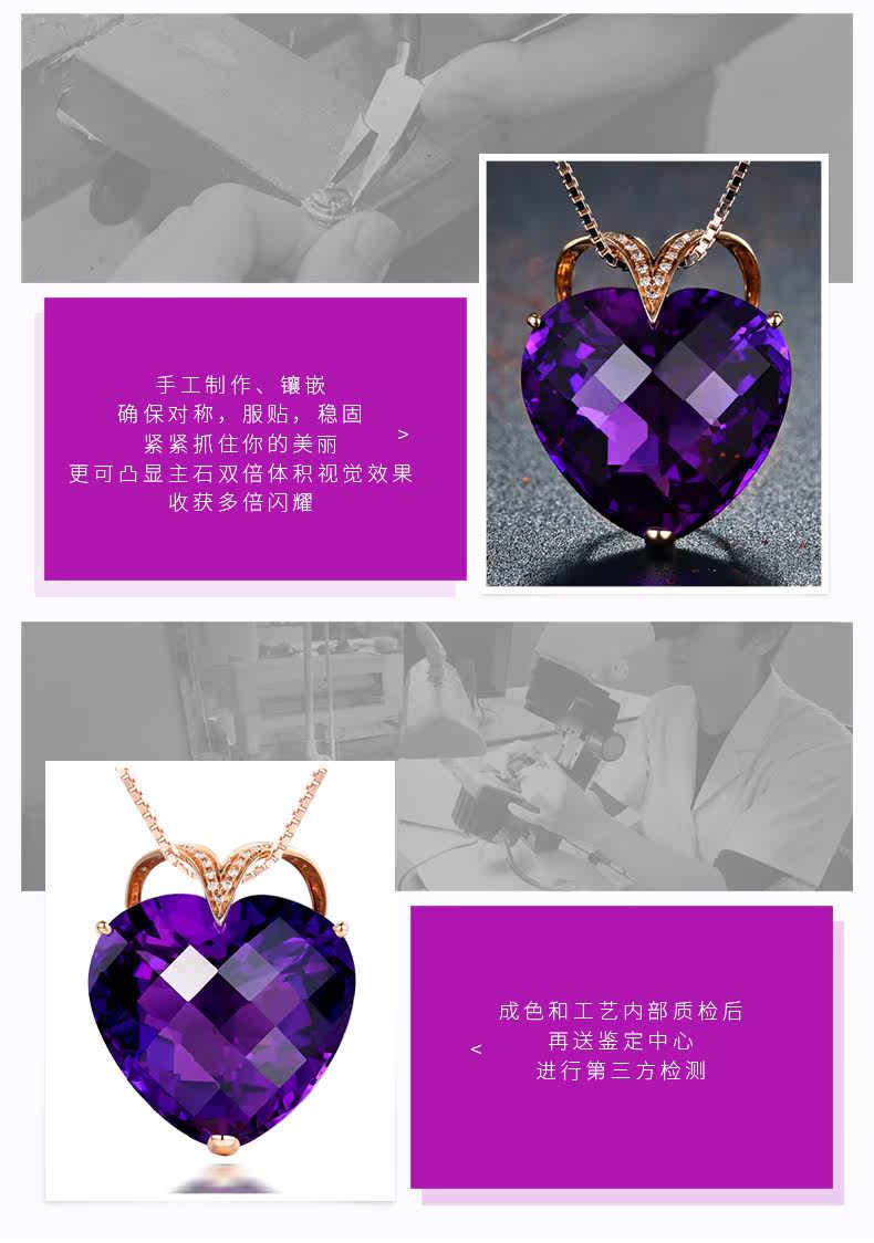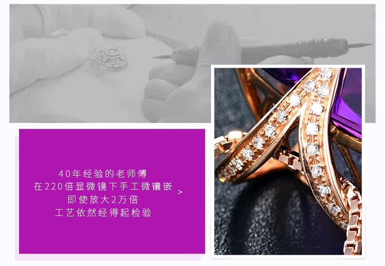 Натуральная подвеска из кварца с аметистом, золотая инкрустация камня, 18 карат, розовое золото, с драгоценным камнем, женский стиль