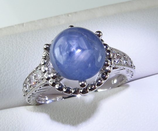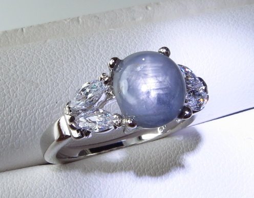 <Название драгоценного камня>Кольцо с натуральным звездчатым сапфиром