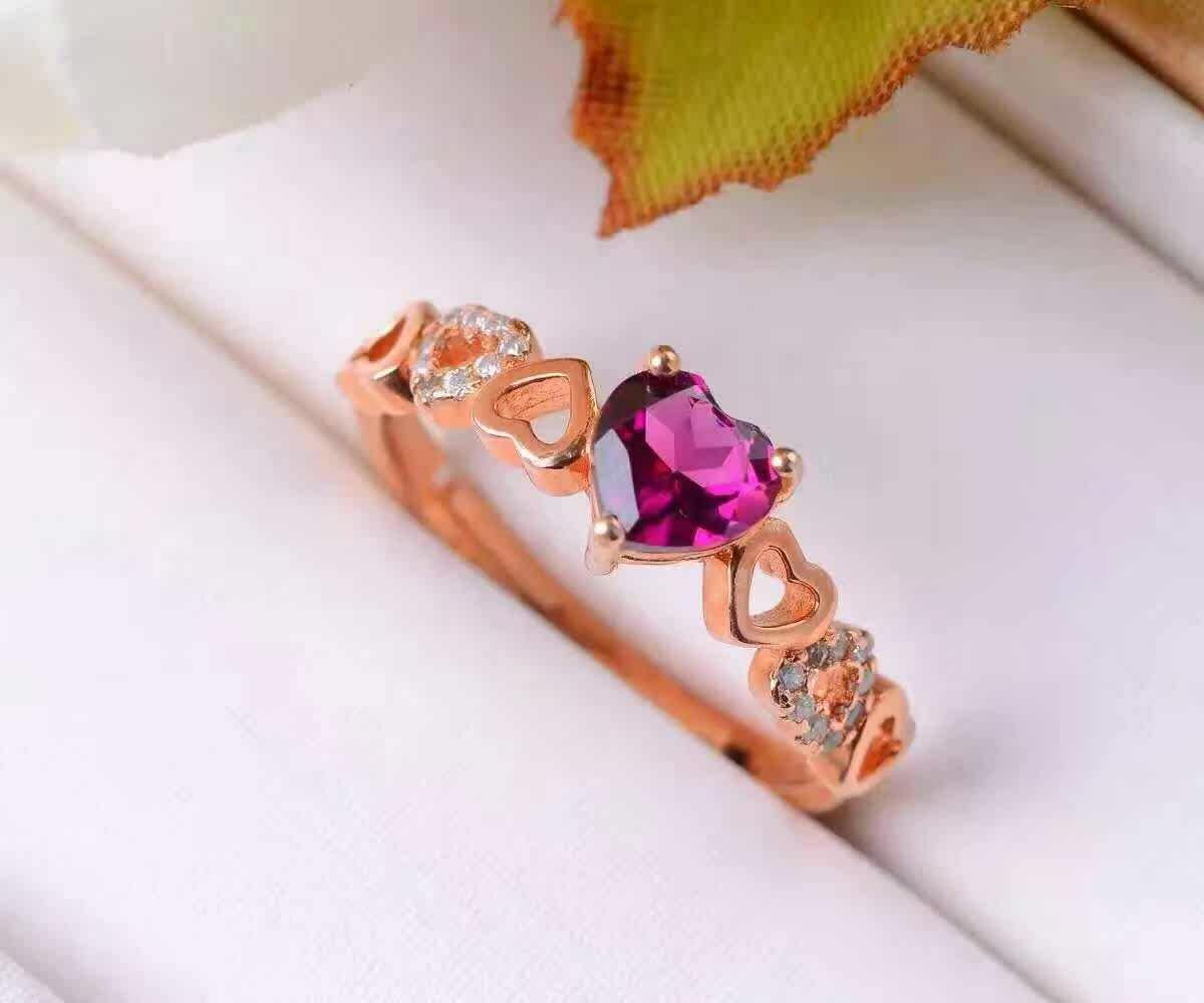 Натуральное кольцо из граната, платиновая золотая инкрустация камня, серебро 925 пробы, розовое золото