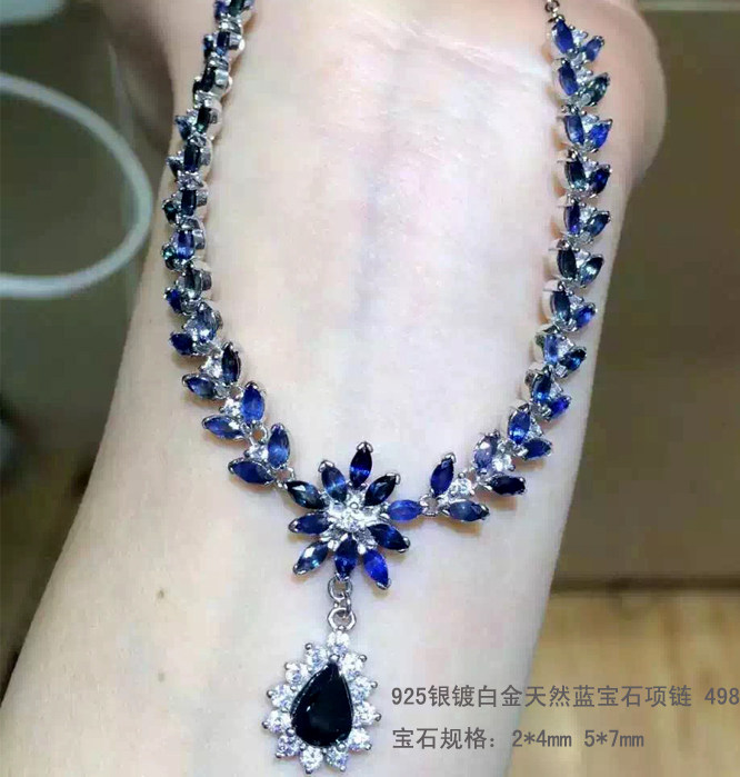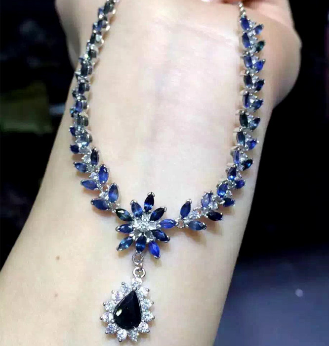 Сапфировая платиновая подвеска из нефрита, серебро 925 пробы