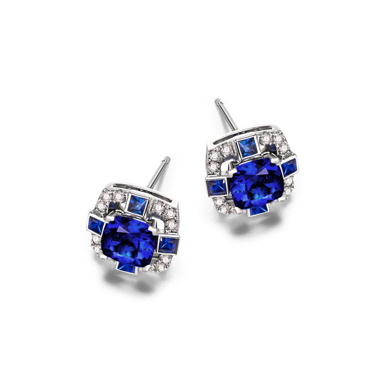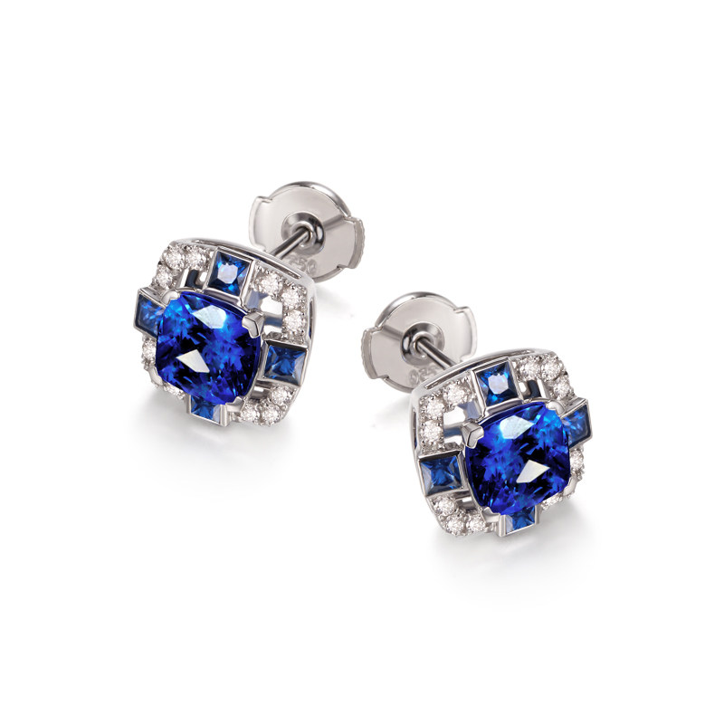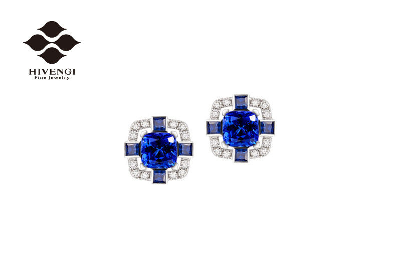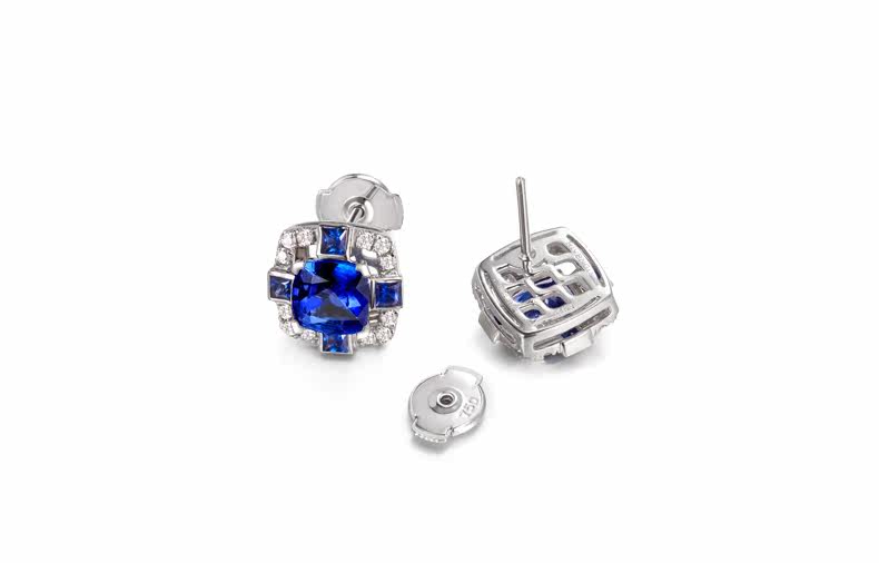 Ювелирное украшение, натуральные платиновые сапфировые серьги, 2.1 карат, белое золото 18 карат