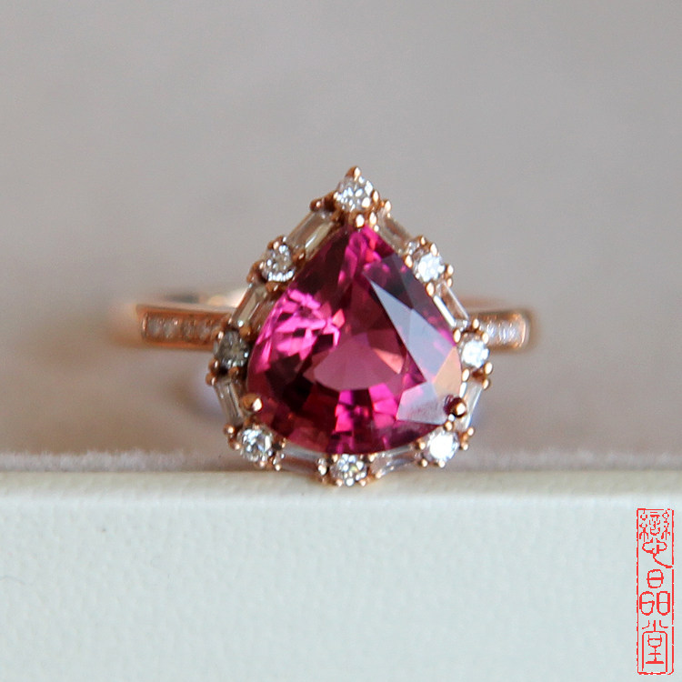 Натуральное турмалиновое золотое бриллиантовое кольцо, 18 карат, розовое золото