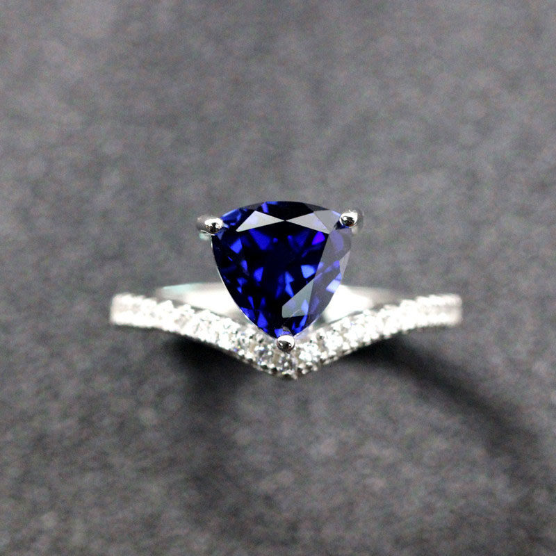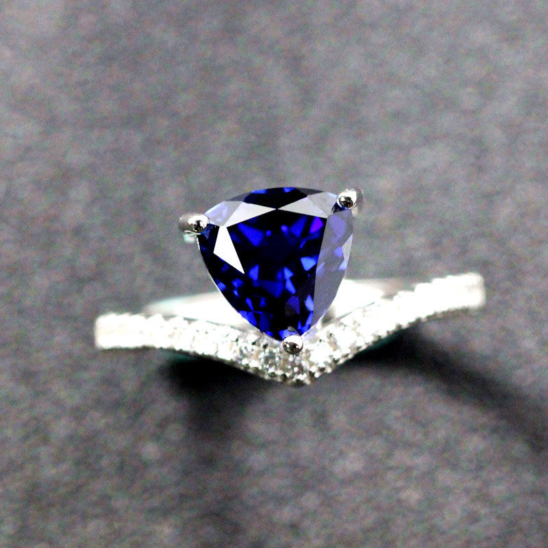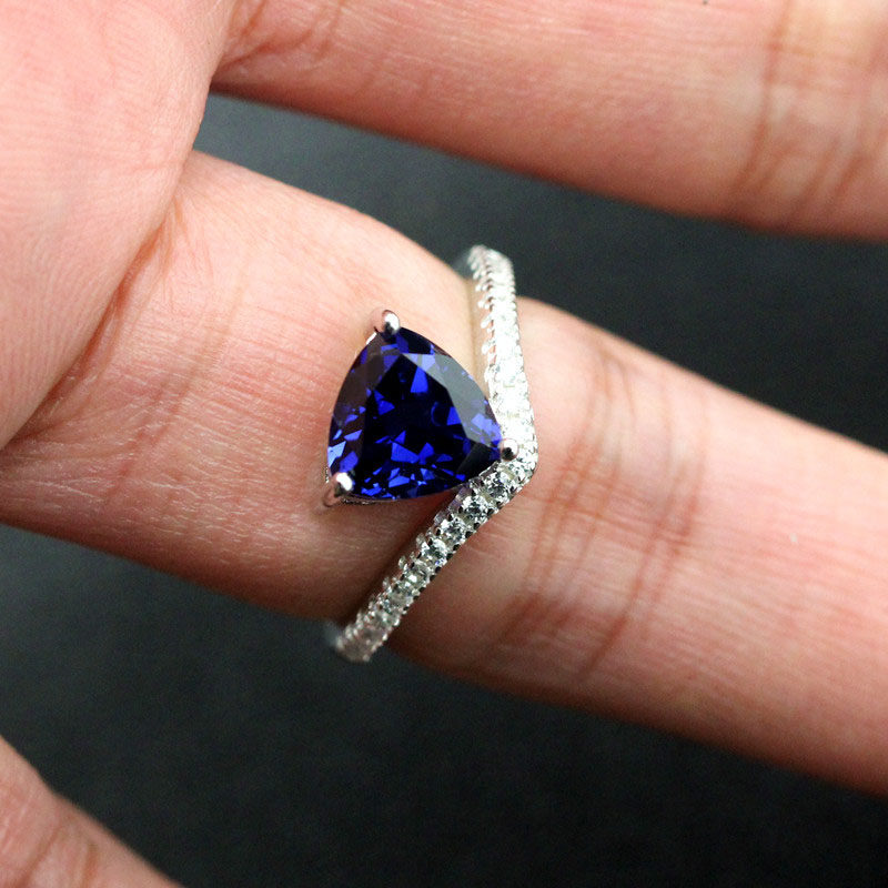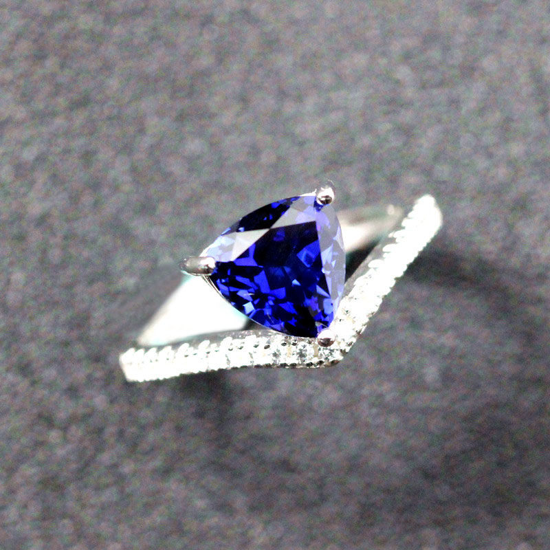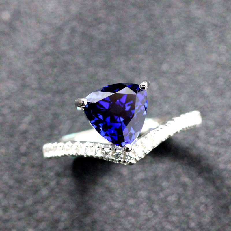 Материал: 925 Серебряное серебро с белым золотом/розовым золотом, растопленное треугольник, расплавленная танзания сапфир 8x8 мм (около 2 карата), швейцарские бриллианты Micro-Set 5A.