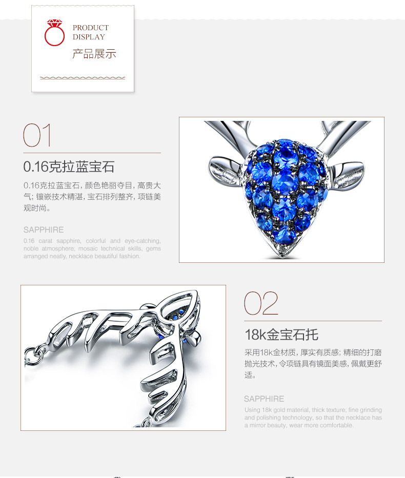 米莱 Ювелирное украшение, сапфировая подвеска из нефрита, ожерелье, 0.16 карат, золото 750 пробы, с драгоценным камнем