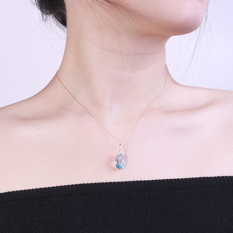 Tide, подвеска, ожерелье, синяя цепочка до ключиц, с драгоценным камнем, золото 14 карат, 8 карат, популярно в интернете