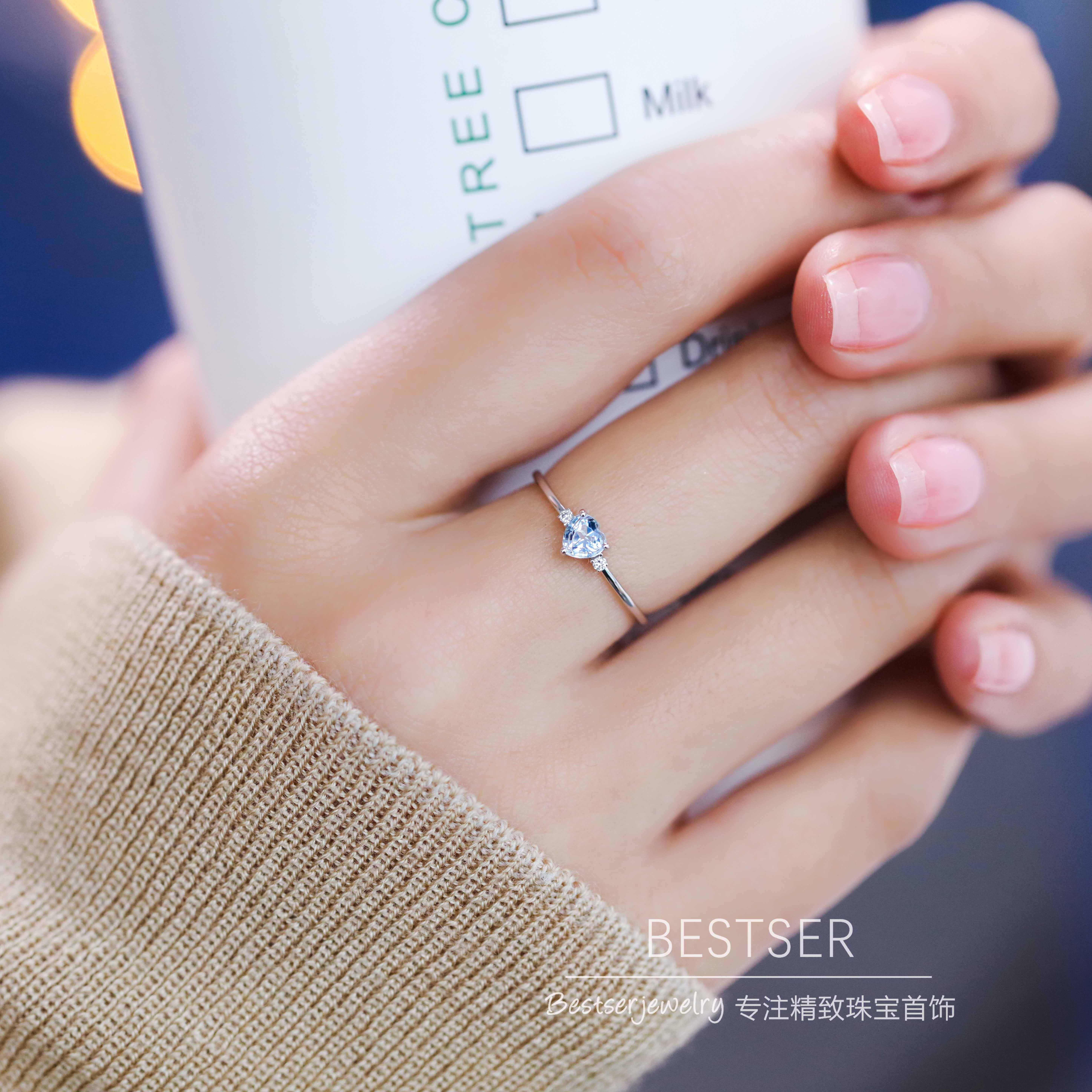 Платиновое сапфировое обручальное кольцо в форме сердца, золото 18 карат