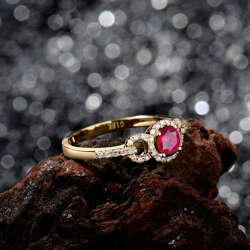 Ювелирное украшение, натуральное рубиновое бриллиантовое кольцо с камнем, золото 18 карат, с драгоценным камнем