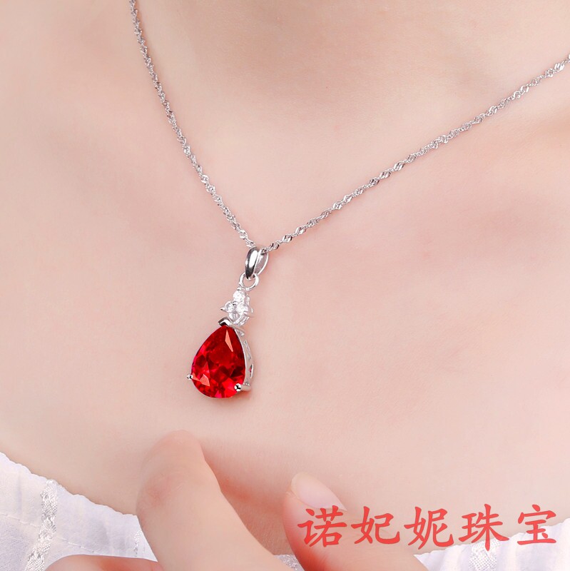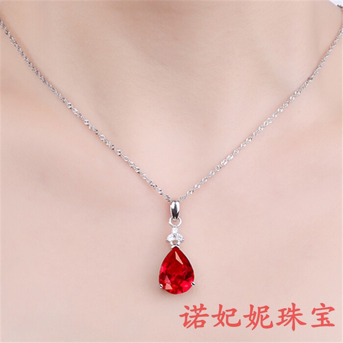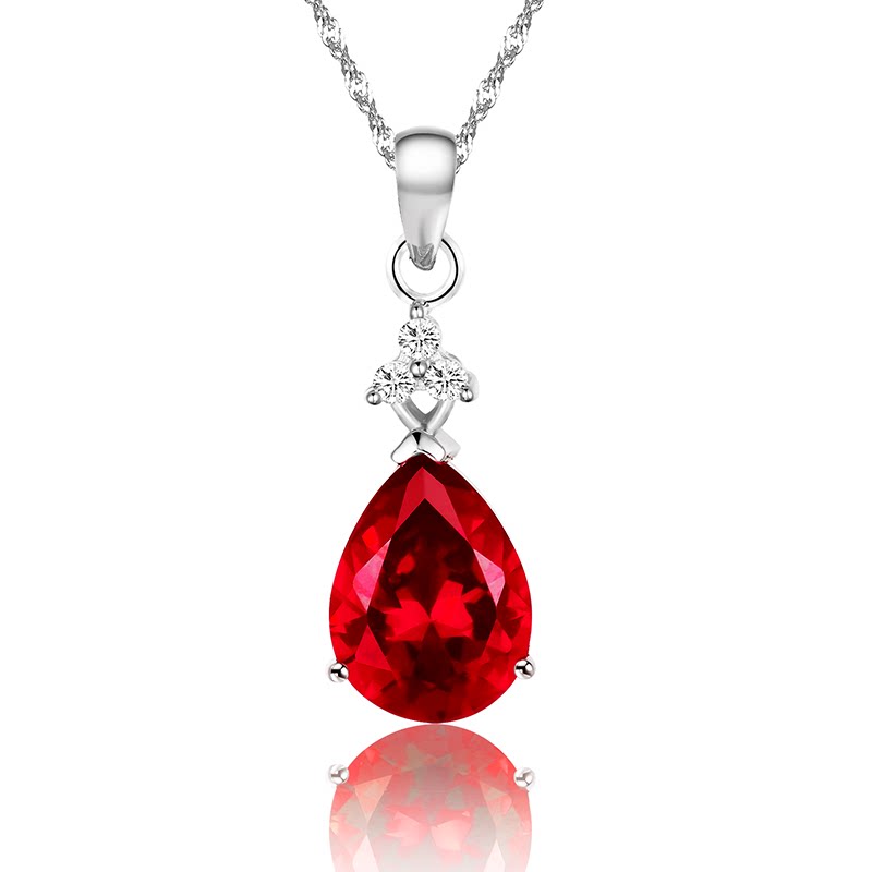 Рубиновая подвеска, турмалиновая инкрустация камня, ожерелье в форме капли, серебро 925 пробы, золото 750 пробы