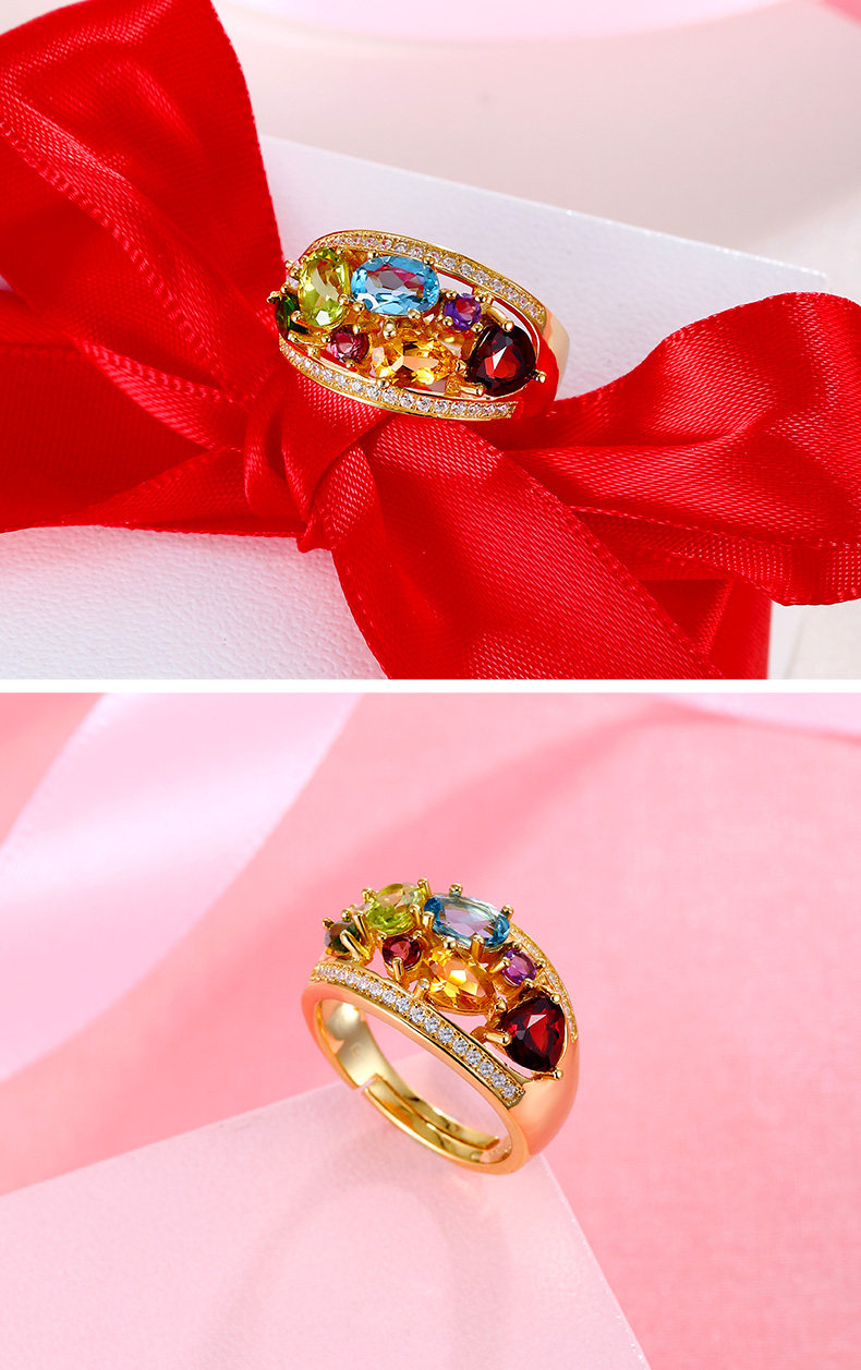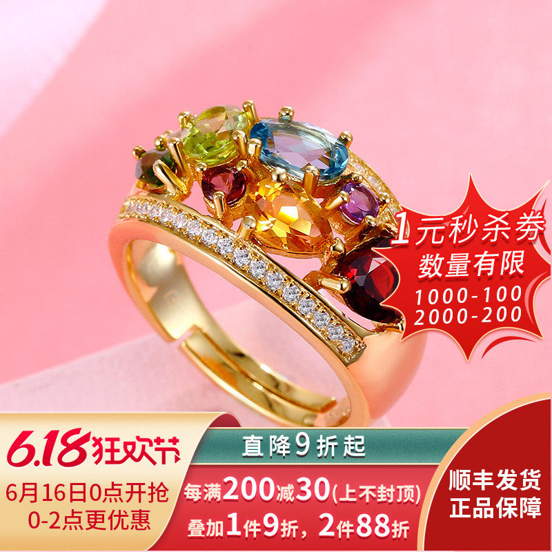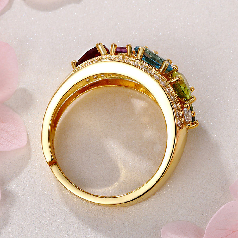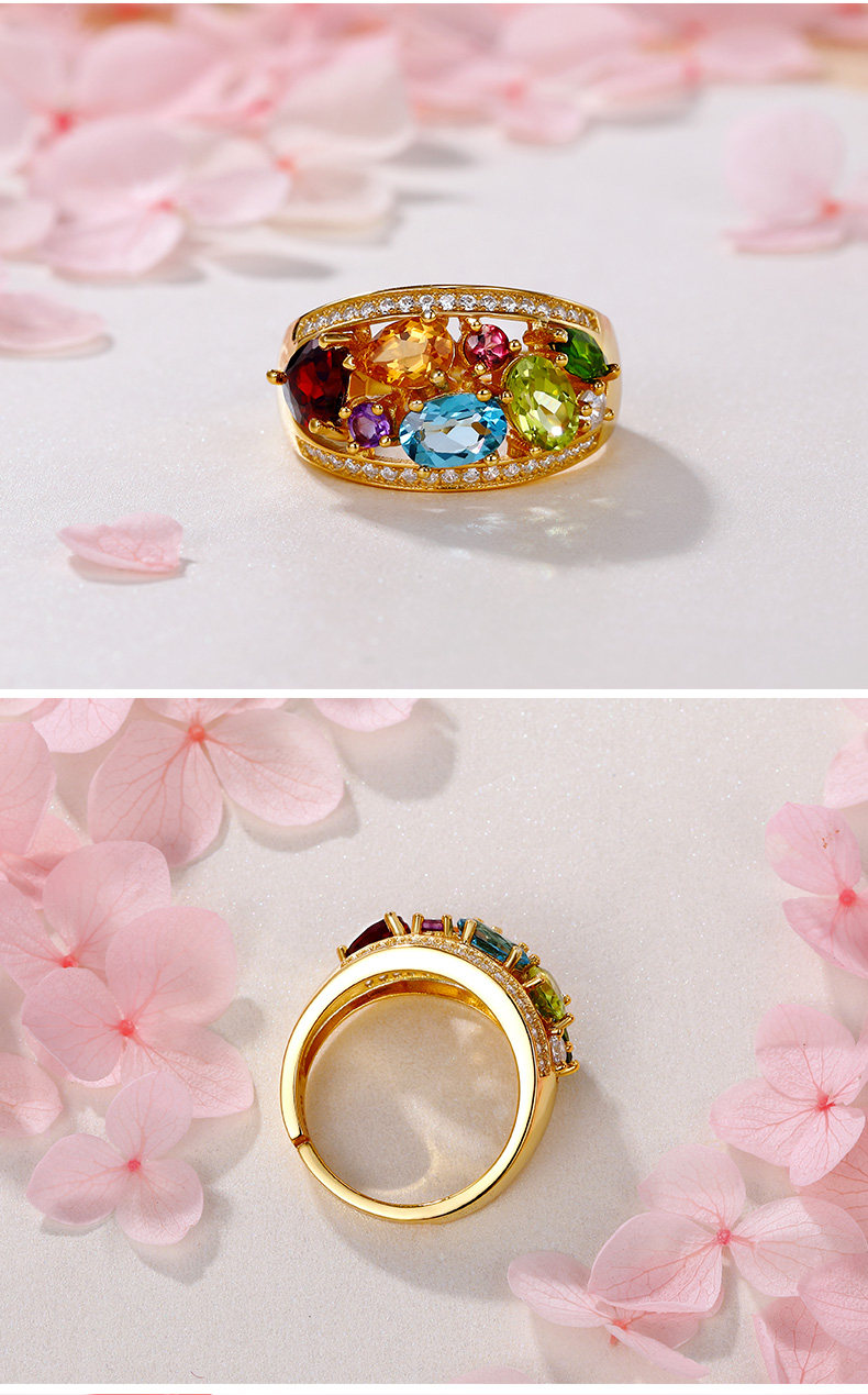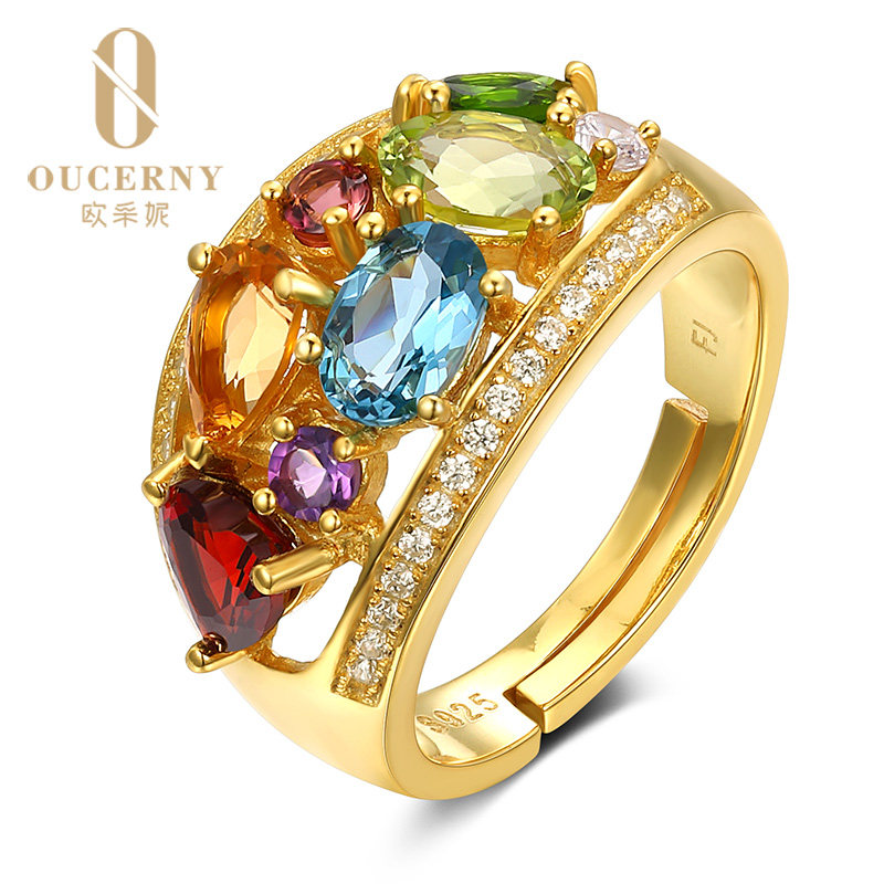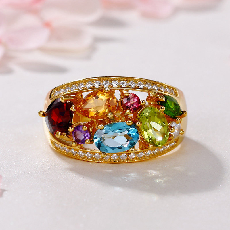Натуральное кольцо с камнем, желтая инкрустация камня, женский стиль, 18 карат, с драгоценным камнем