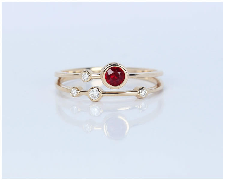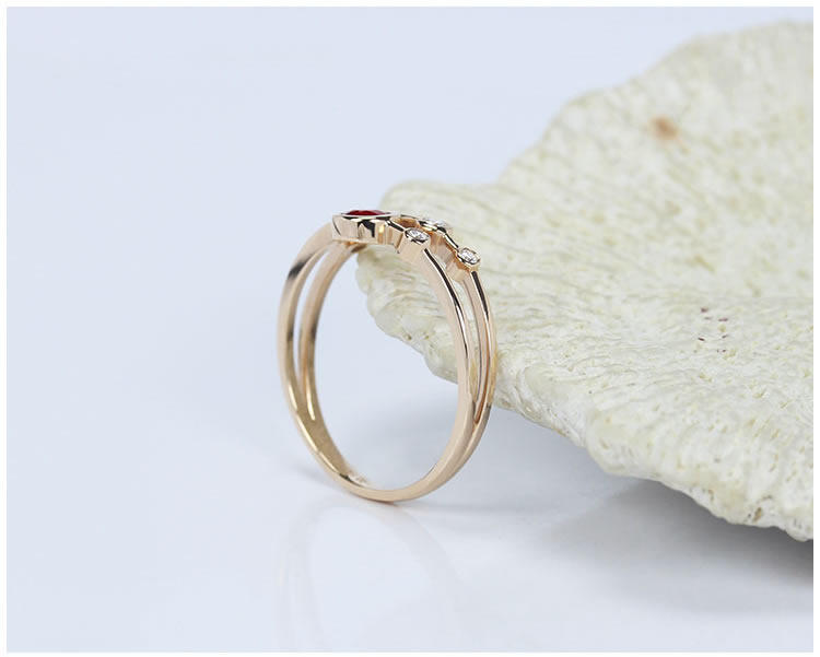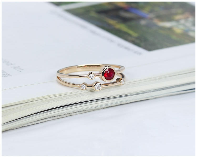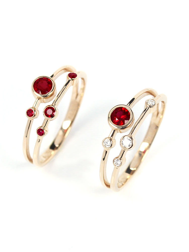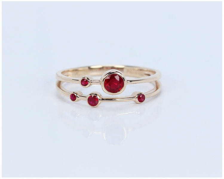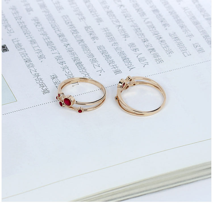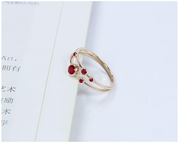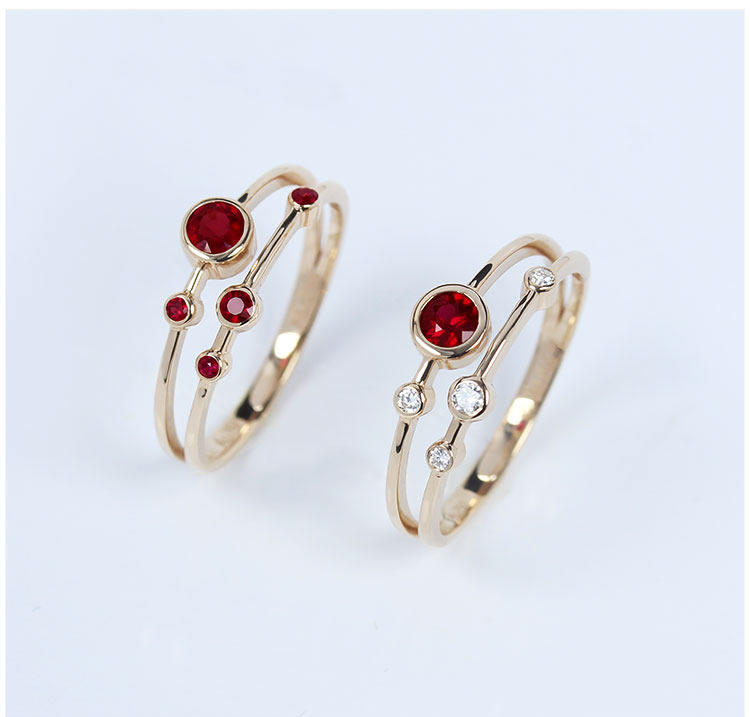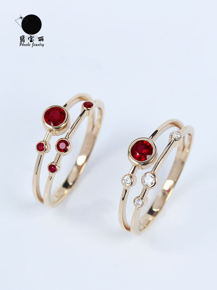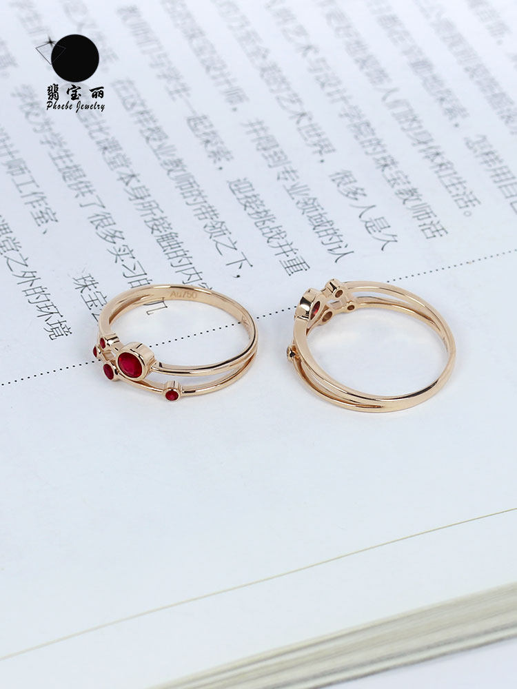 Золотое натуральное рубиновое планетарное бриллиантовое кольцо, 18 карат, розовое золото, женский стиль