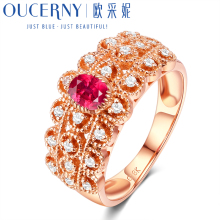 Золотое натуральное кольцо с камнем, 18 карат, розовое золото, женский стиль