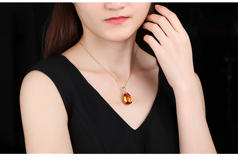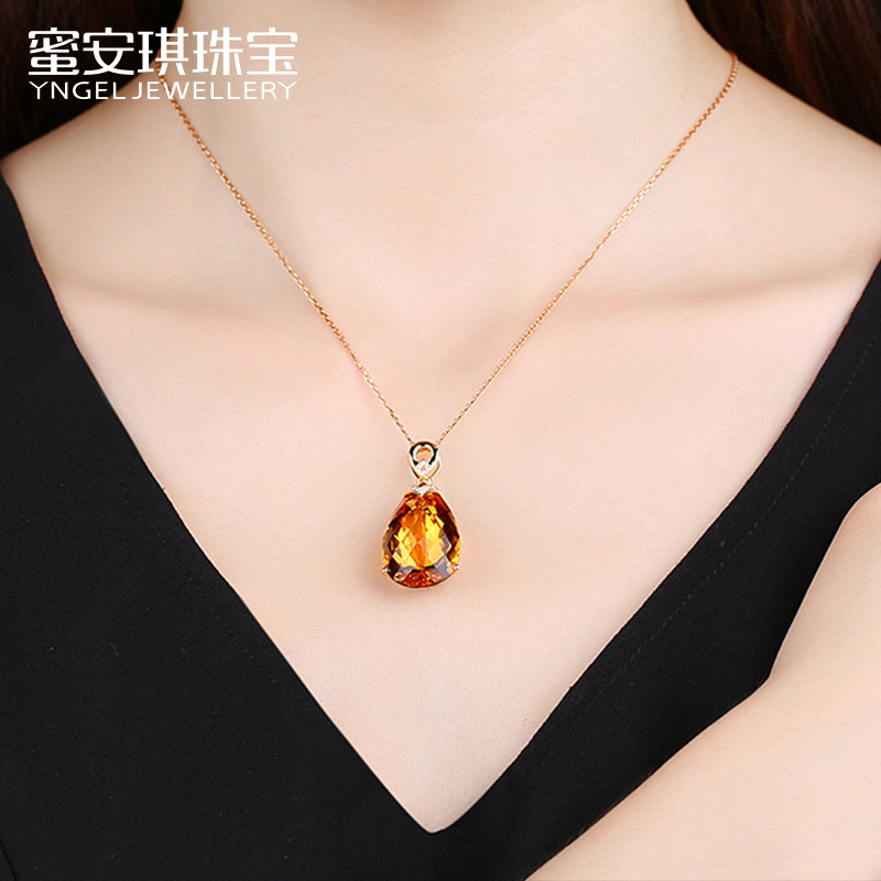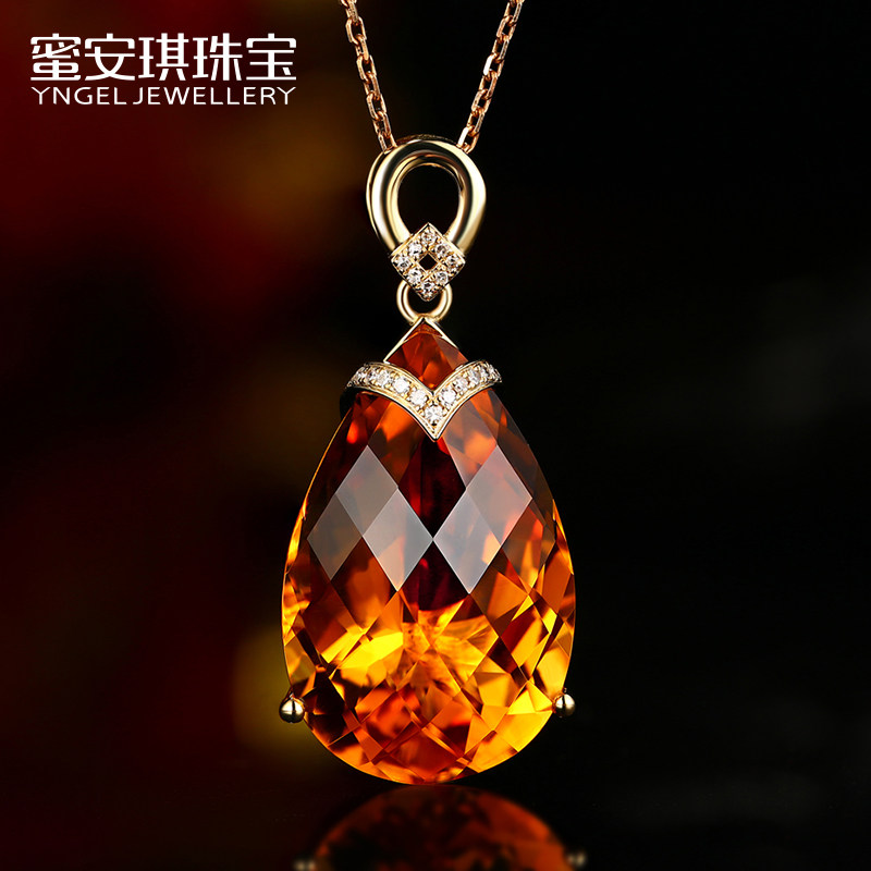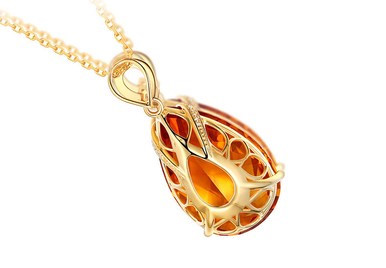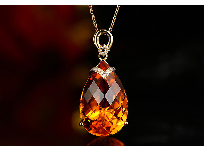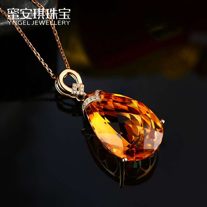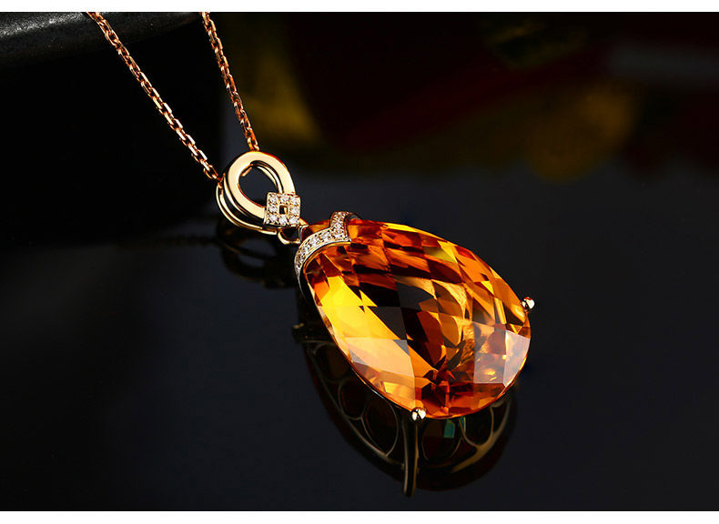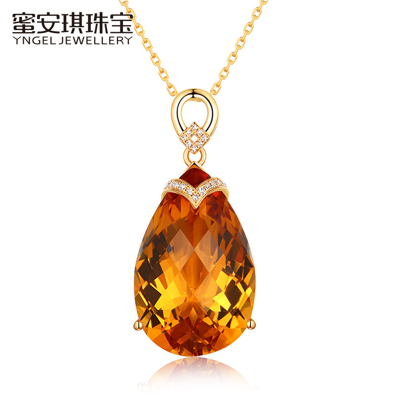 Натуральная подвеска из кварца, инкрустация камня, 22.86 карат, золото 750 пробы, с драгоценным камнем