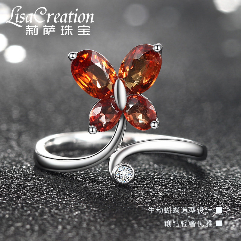 Ювелирное украшение, натуральное оранжевое сапфировое бриллиантовое кольцо с камнем, золото 750 пробы, с драгоценным камнем