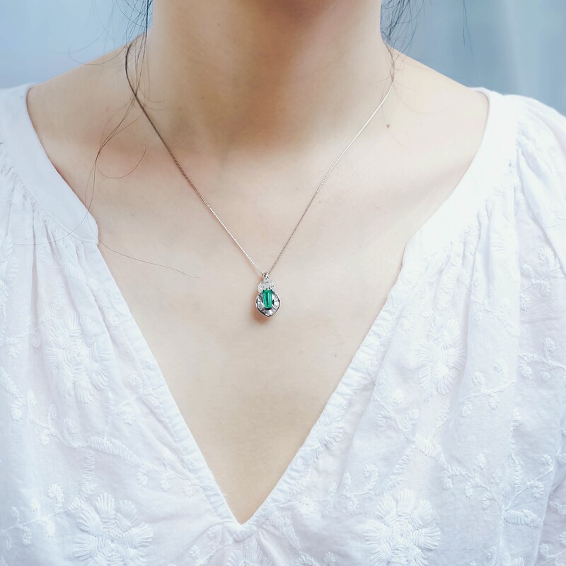 Columbia, бриллиантовое платиновое ожерелье изумруд, с драгоценным камнем