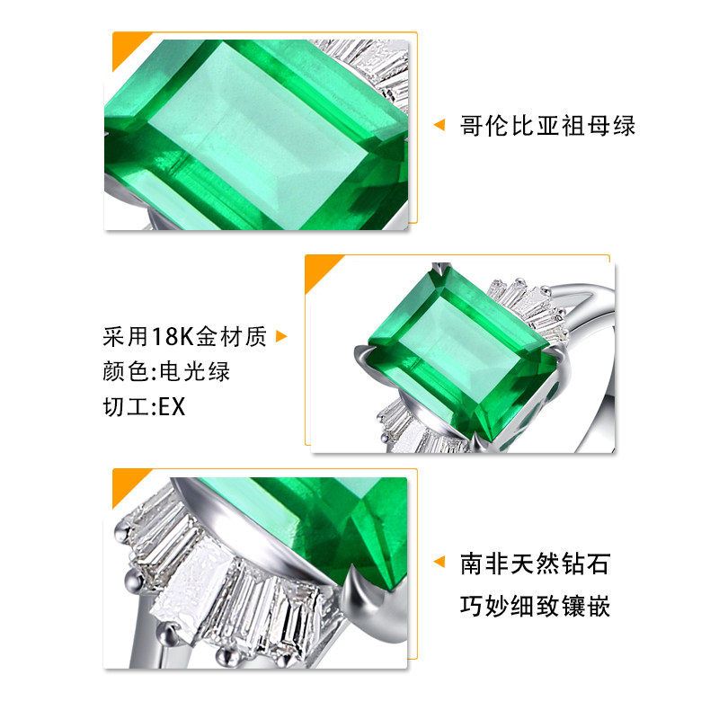 依舒度 Натуральное кольцо с камнем изумруд, бриллиантовая инкрустация камня, 2.3 карат, золото 750 пробы