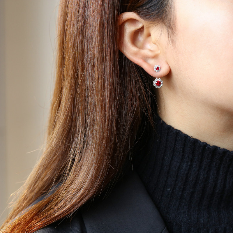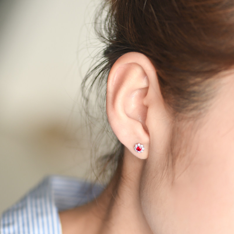 Платиновые серьги, с драгоценным камнем, белое золото 18 карат