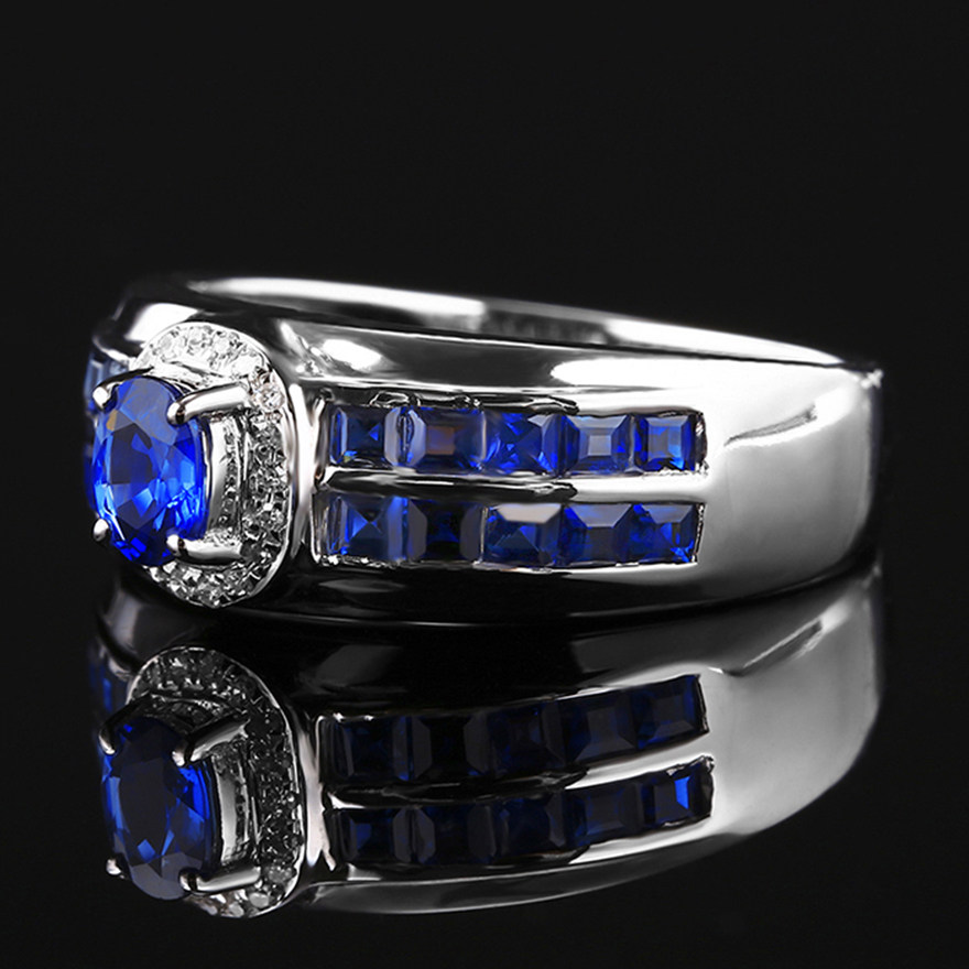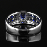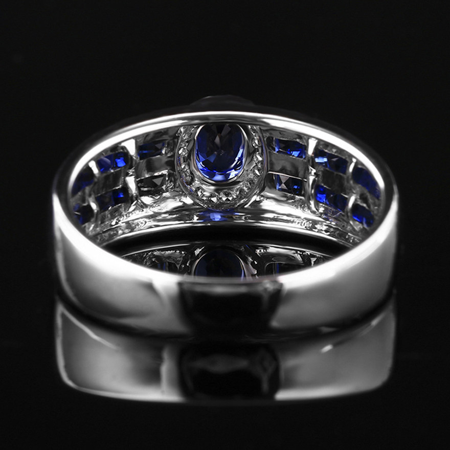 Ювелирное украшение, сапфировое кольцо с камнем из нефрита, бриллиантовая инкрустация камня, 1.6 карат, золото 750 пробы, простой и элегантный дизайн, стиль, делается под заказ