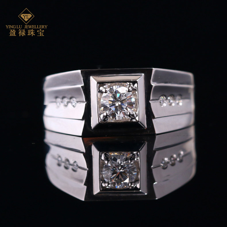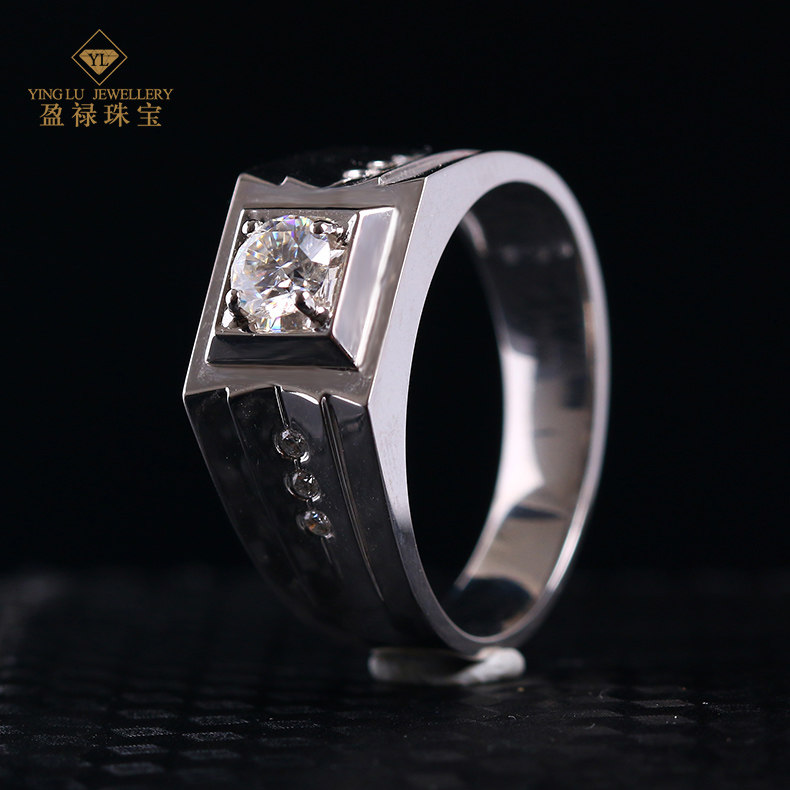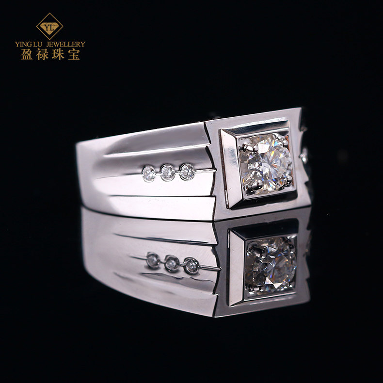盈禄 Блестящее кольцо, элегантная инкрустация камня, мужской стиль, золото 750 пробы, простой и элегантный дизайн