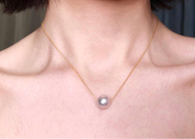 Японская импортная цепочка до ключиц из жемчуга, 10mm, золото 750 пробы