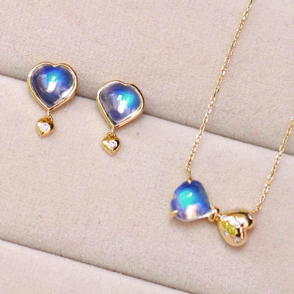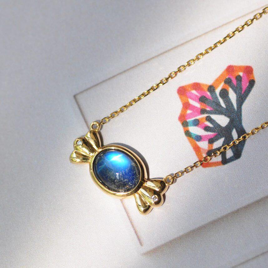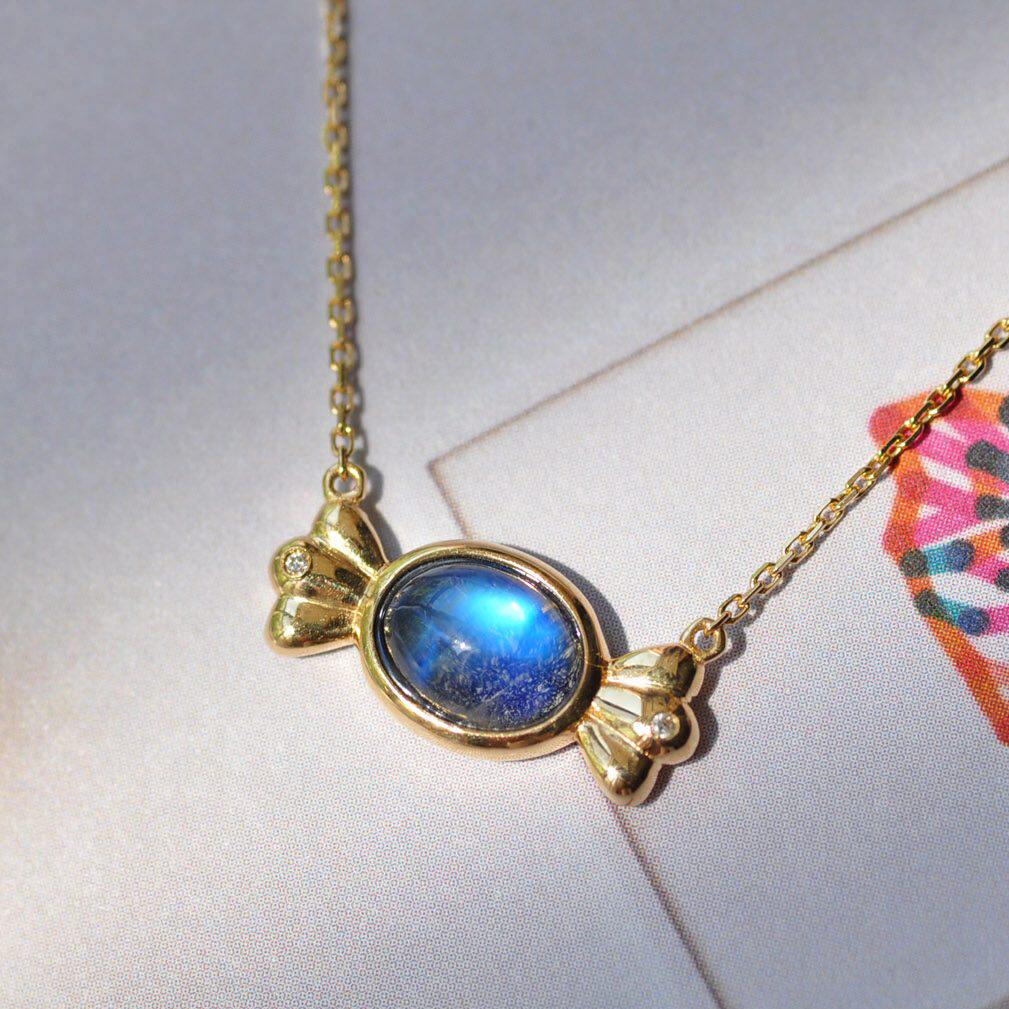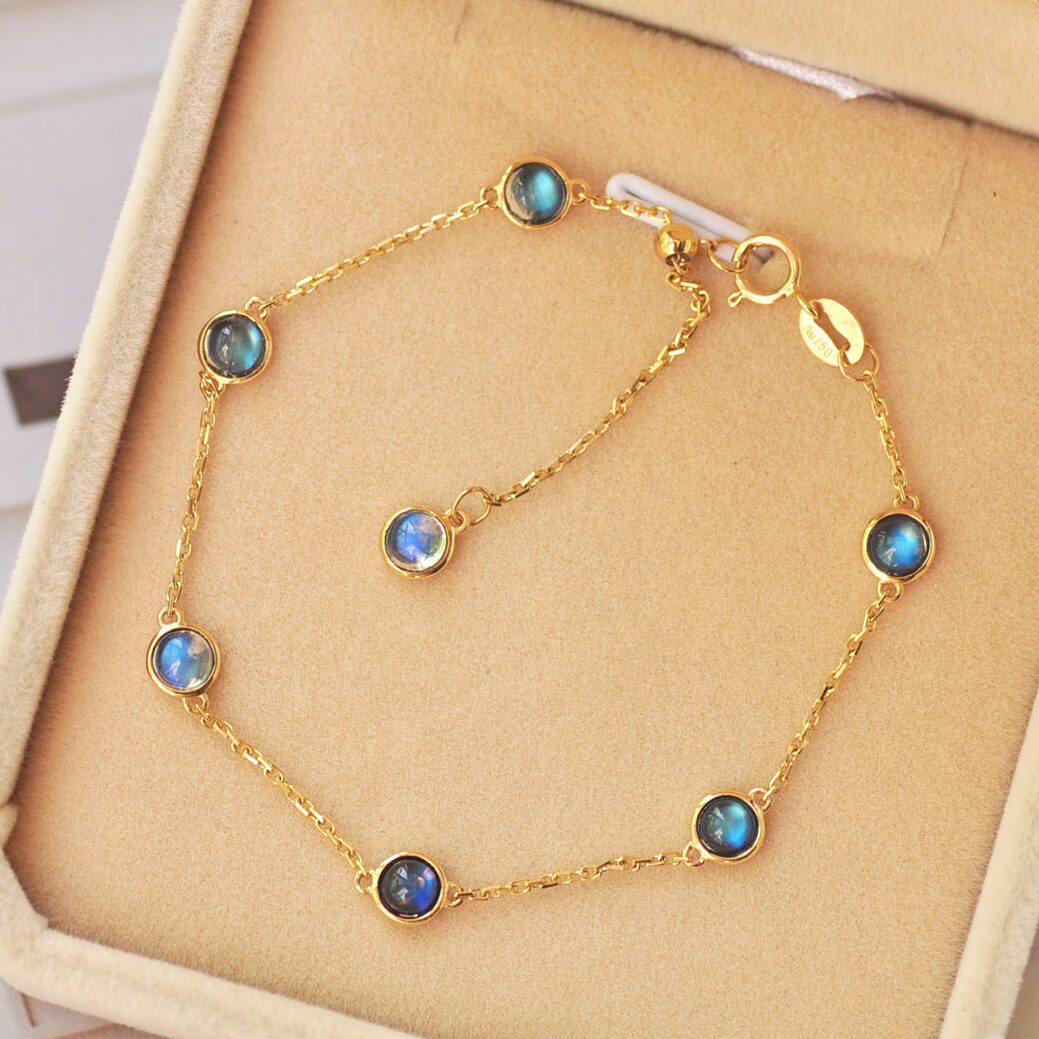 Золотое натуральное стеклянное свежее ожерелье, цепочка до ключиц, 18 карат, лунный камень