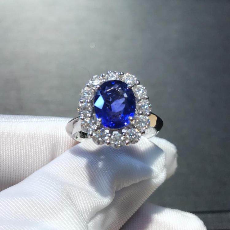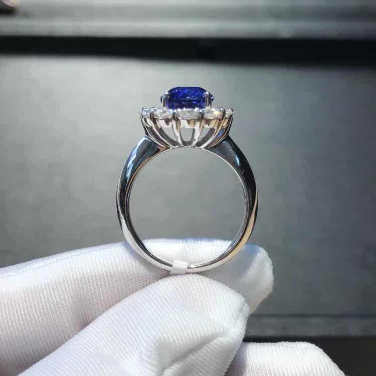 Натуральное сапфировое платиновое кольцо, ювелирное украшение, с драгоценным камнем, белое золото 18 карат