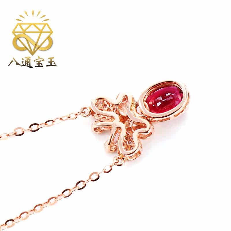 - Бриллиантовая инкрустация камня, турмалиновая цепочка до ключиц, золото 750 пробы