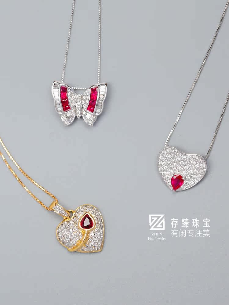 Рубиновое бриллиантовое ювелирное украшение, платиновое ожерелье, золото 750 пробы