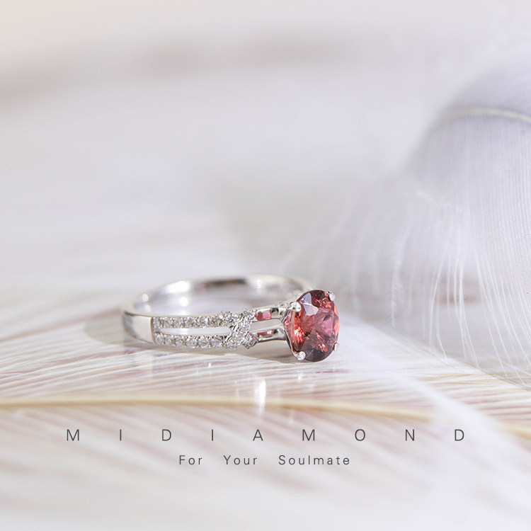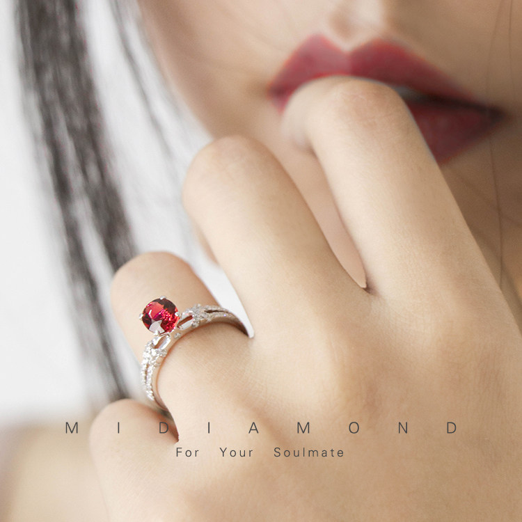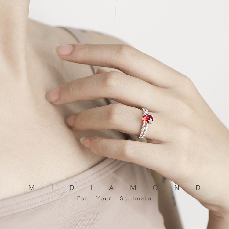 Бриллиантовое кольцо с камнем из граната, платиновое обручальное кольцо, белое золото 18 карат, один карат, делается под заказ