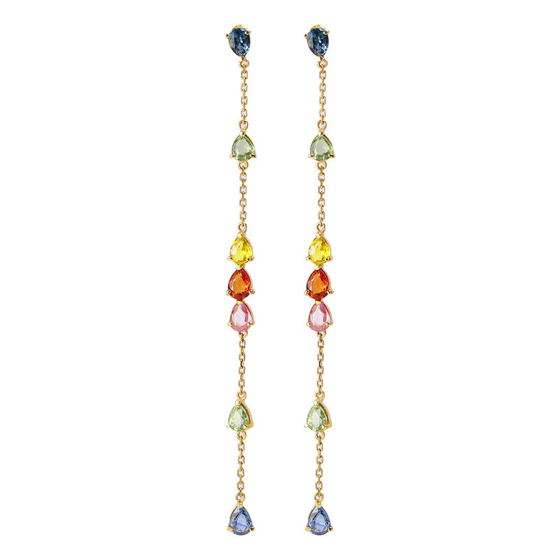 Ювелирное украшение, длинные сапфировые серьги, золото 18 карат