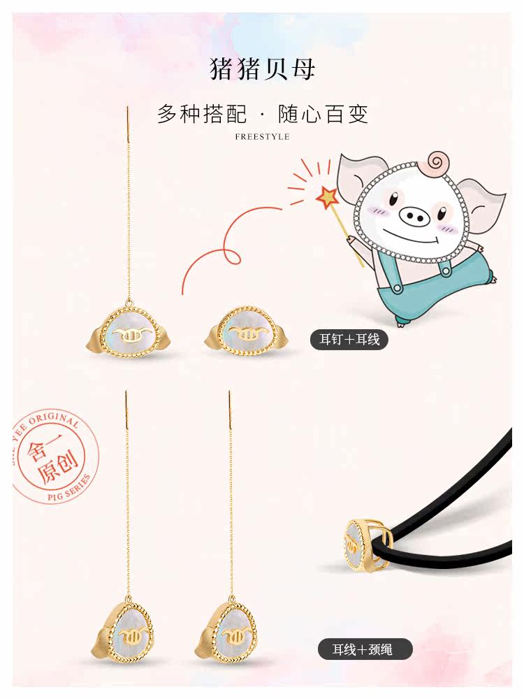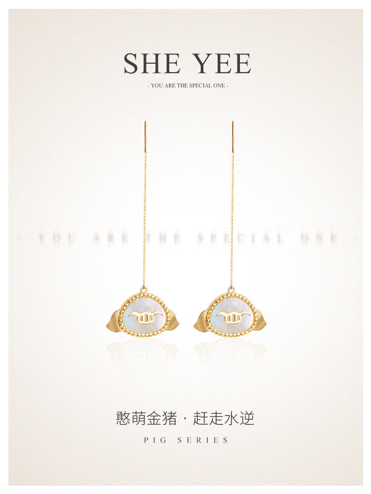 Серьги, золотой браслет с одной бусиной, золото 750 пробы, китайский гороскоп, золото 18 карат