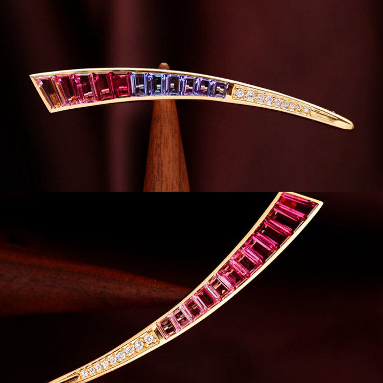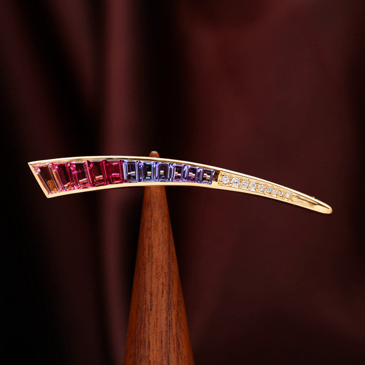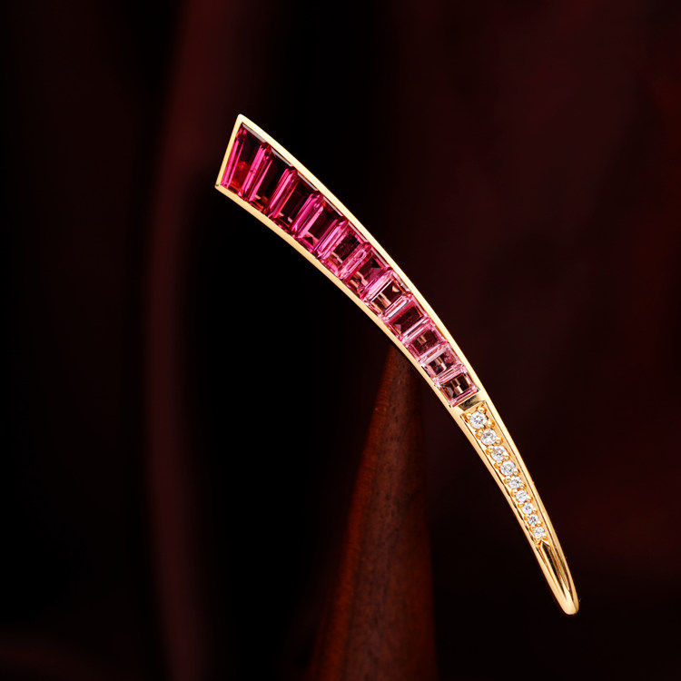 存臻 Турмалиновое ювелирное украшение, бриллиантовая брошь, золото 750 пробы