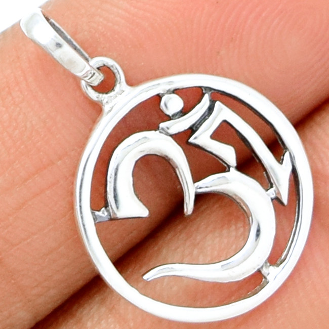 Подлинный плоскость 925 Серебряный серебряный ом религиозный кулон, 27 мм, 1,6 грамма, SPJ2061