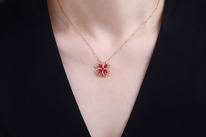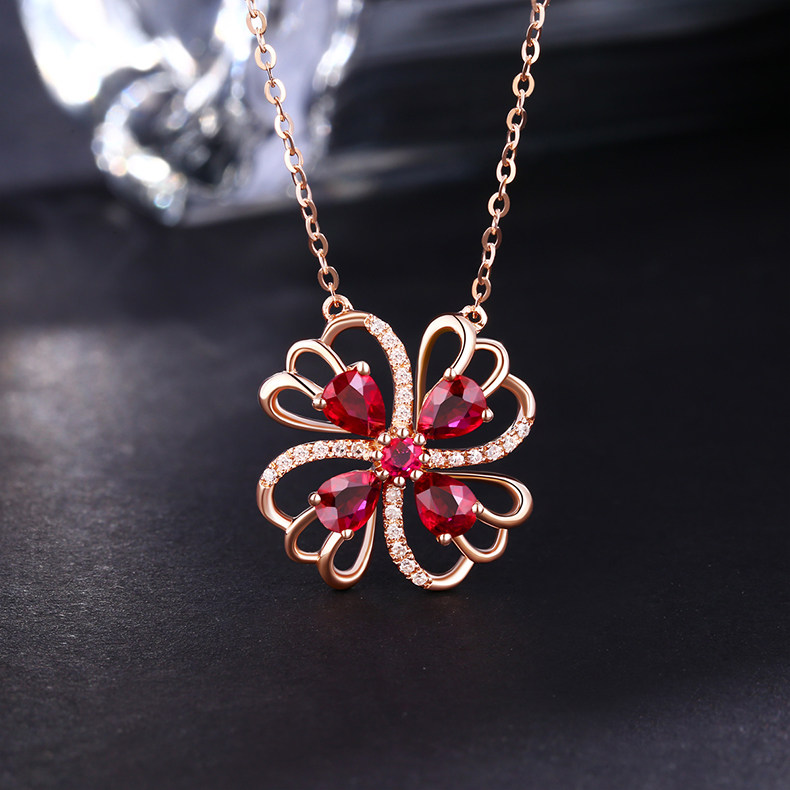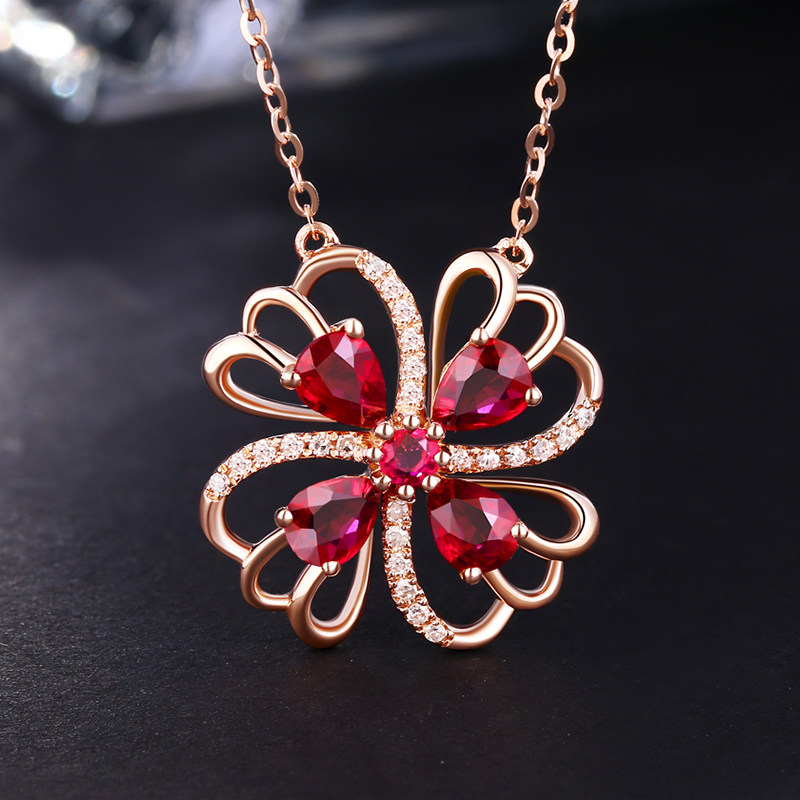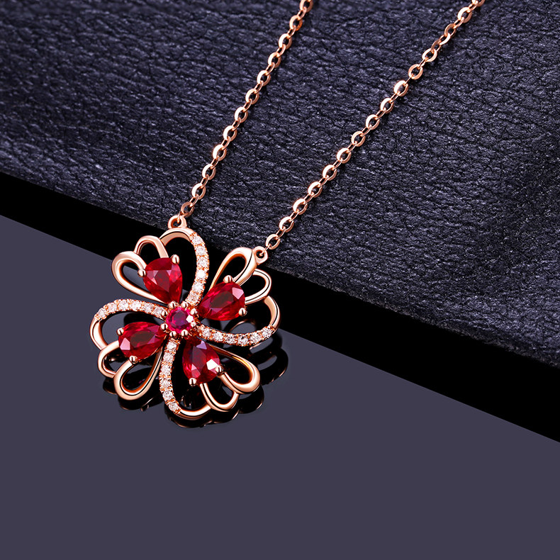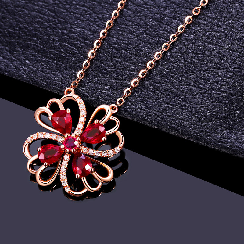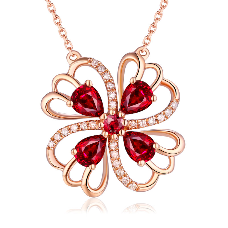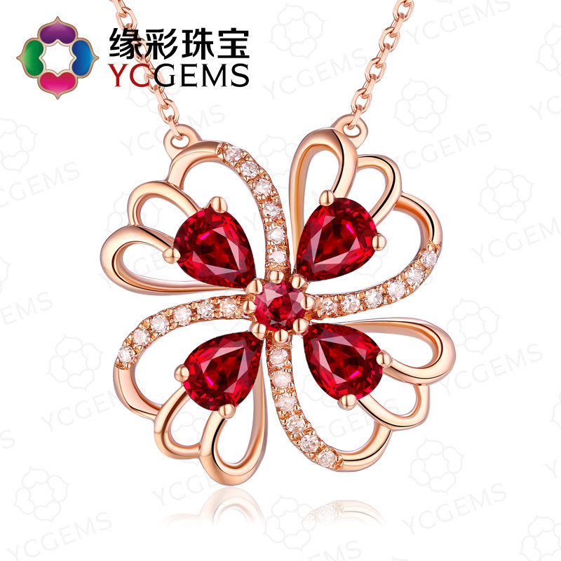 YCGEMS/缘彩珠宝 Рубиновая подвеска, бриллиантовая инкрустация камня, 0.8 карат, золото 9 карат, с драгоценным камнем