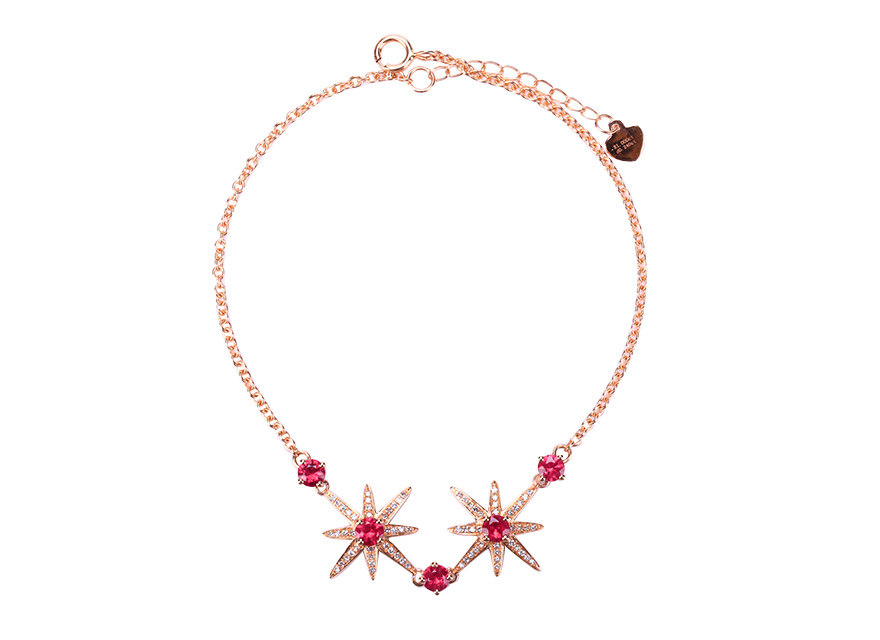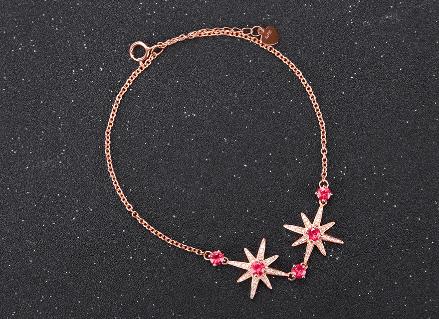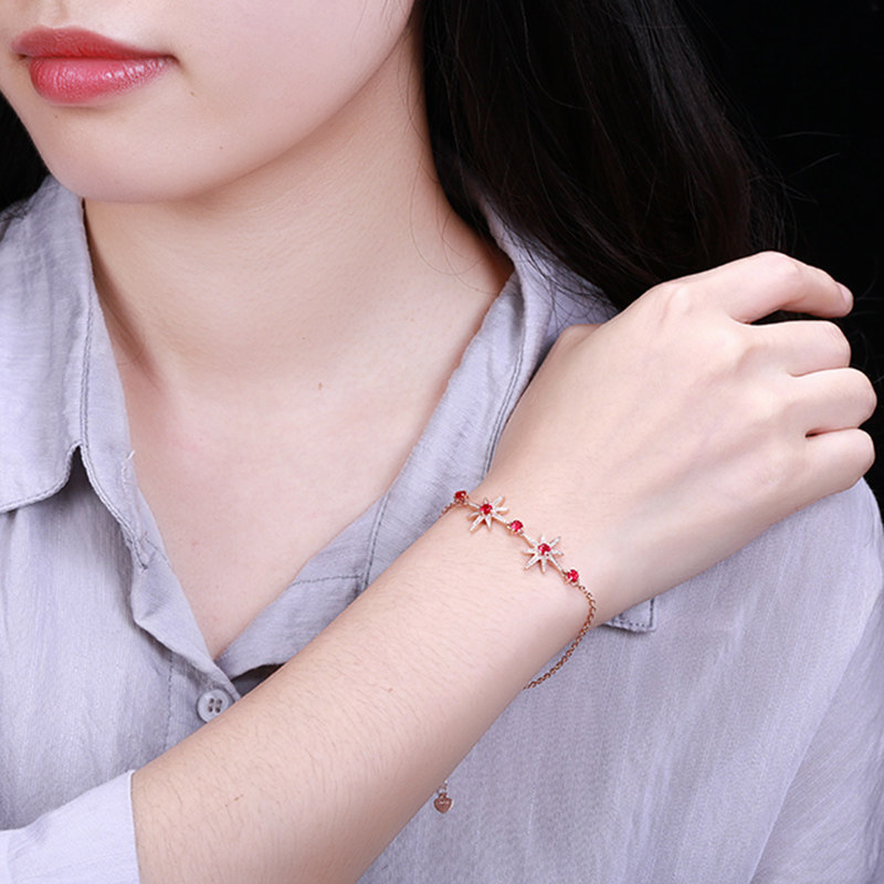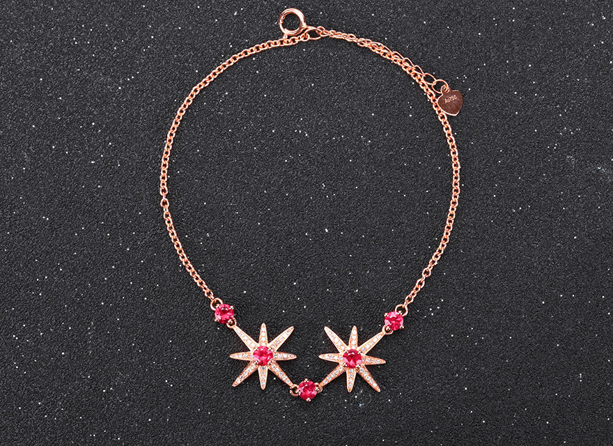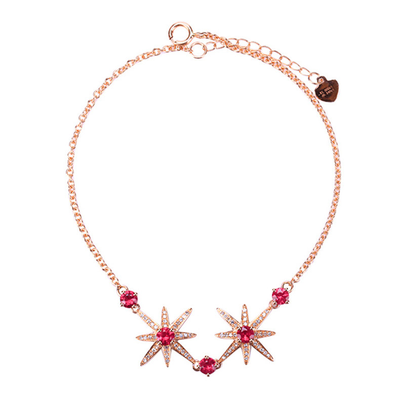 意禄 Рубиновый браслет из натурального камня, бриллиантовая инкрустация камня, звездное небо, 1.0 карат, золото 750 пробы, (в наличии на складе)