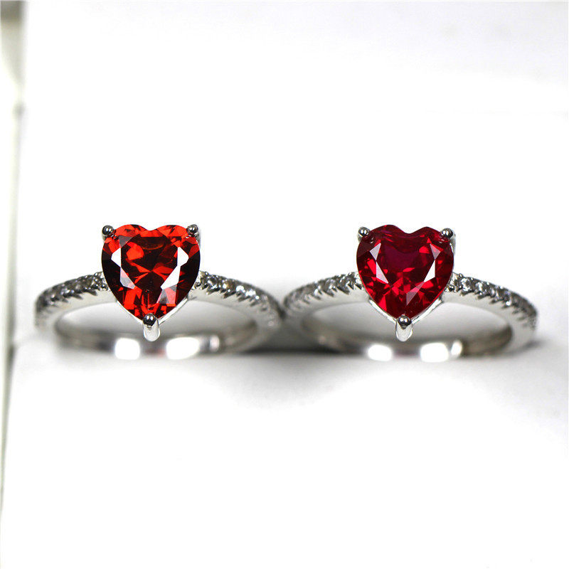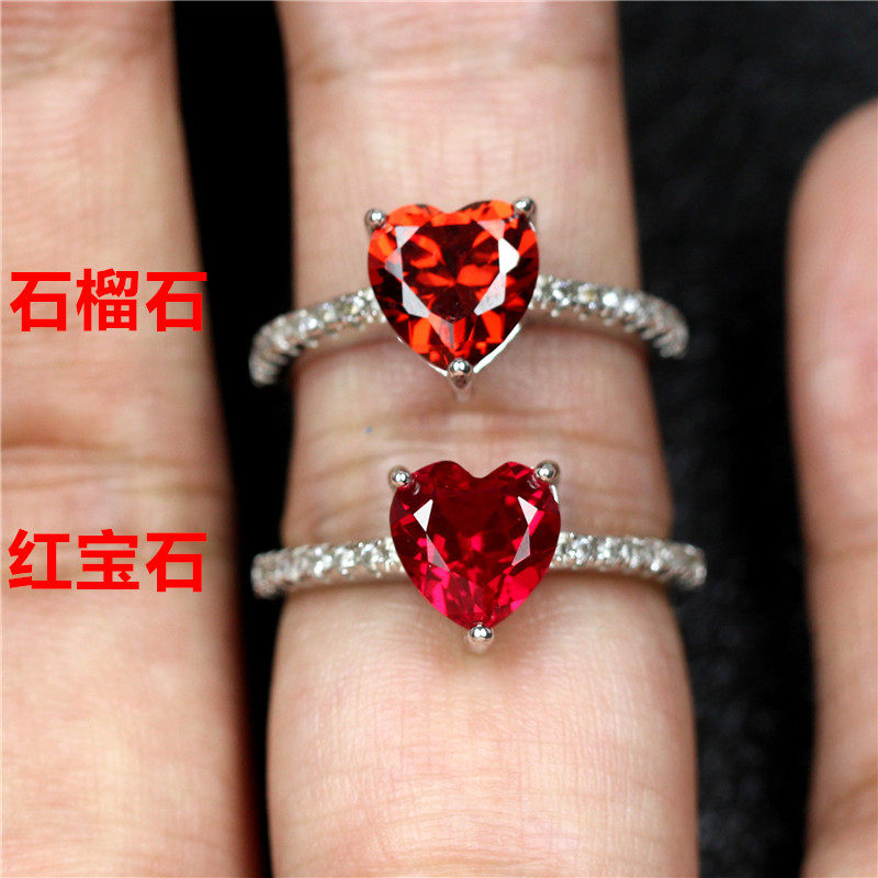 Рубиновое кольцо в форме сердца, ювелирное украшение из граната, серебро 925 пробы, в корейском стиле, легкий роскошный стиль, популярно в интернете