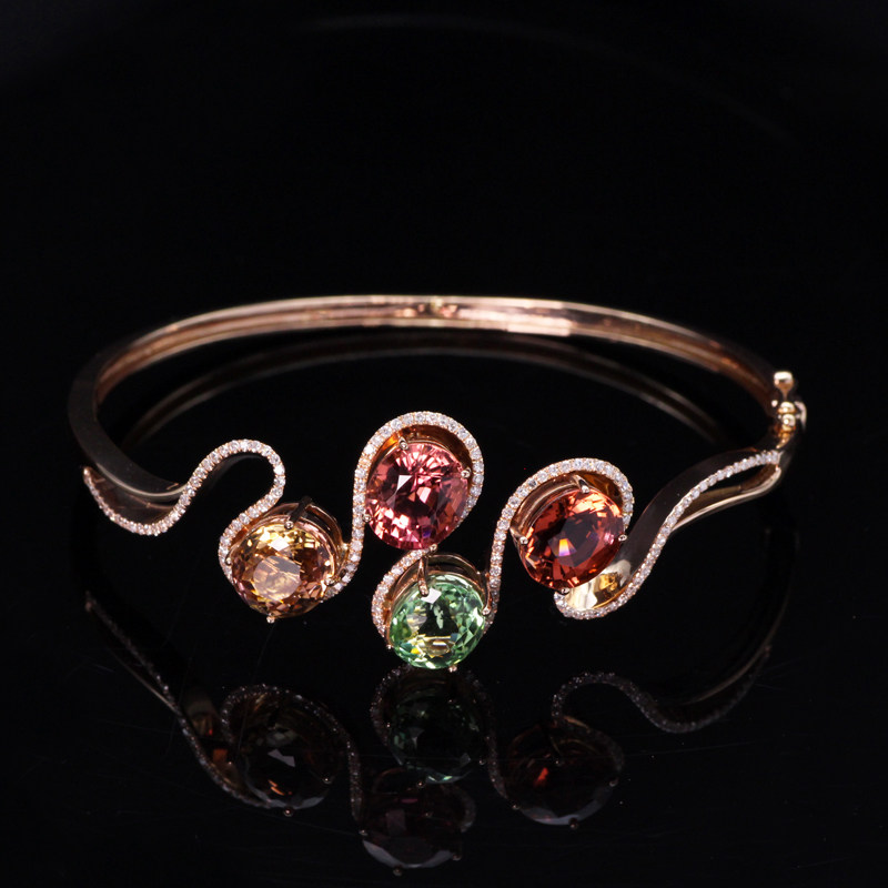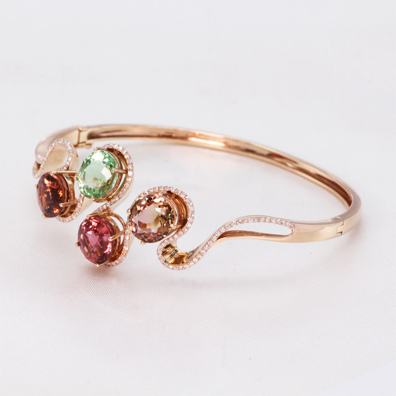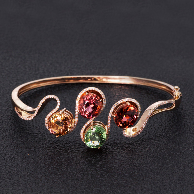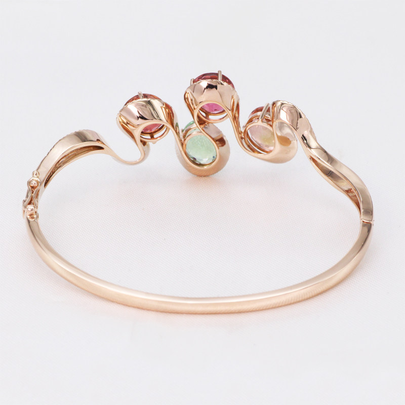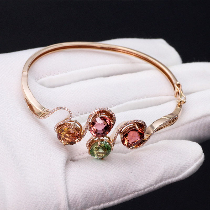 金钰良缘珠宝 Турмалиновая инкрустация камня, натуральный золотой браслет, золото 750 пробы, розовое золото