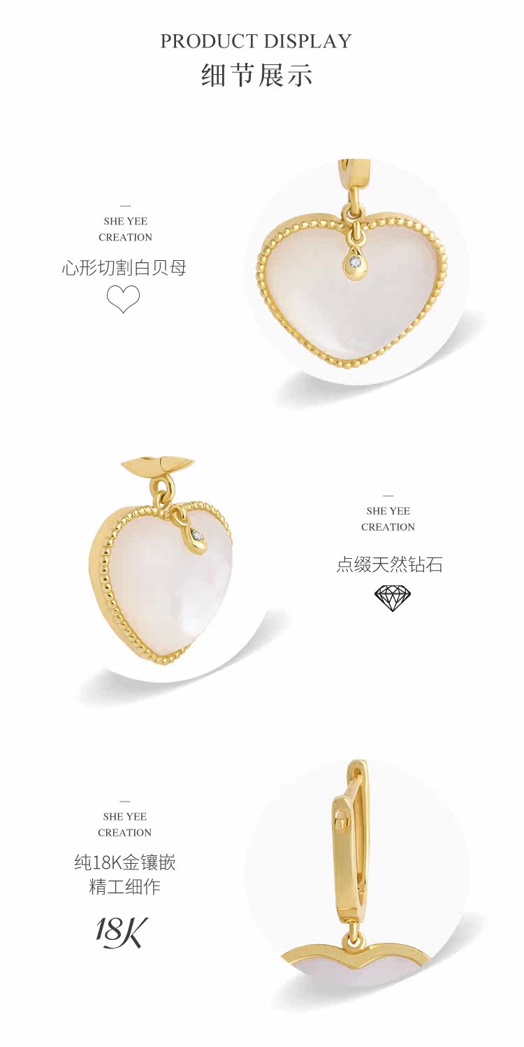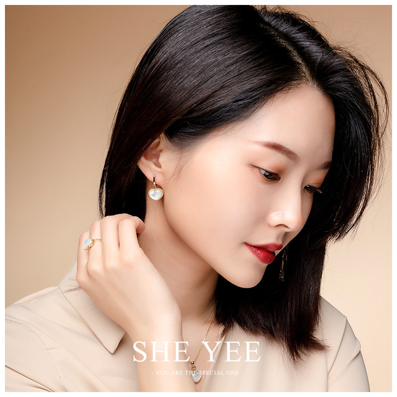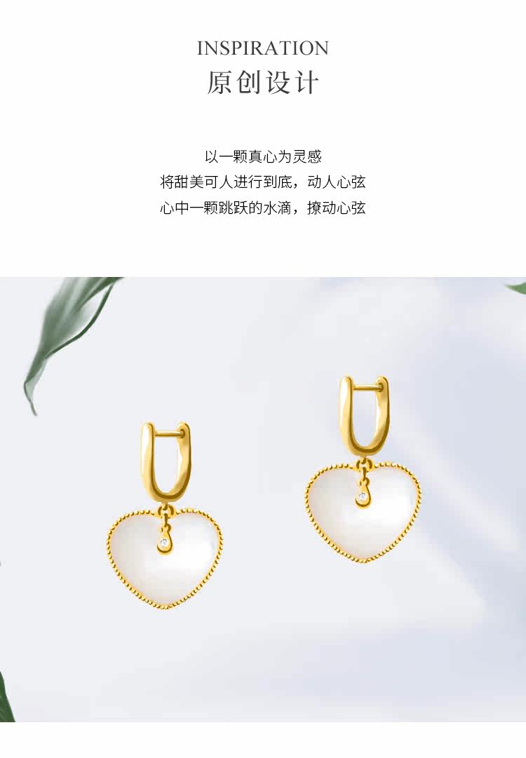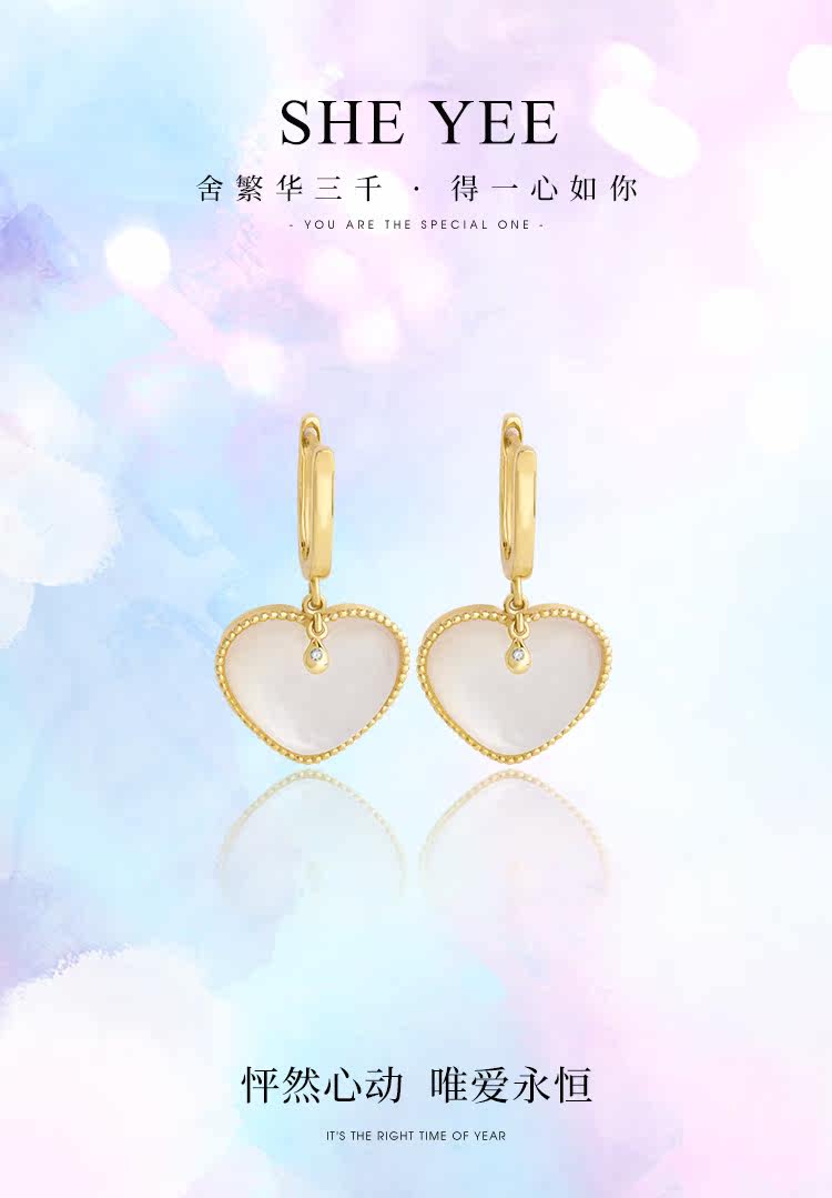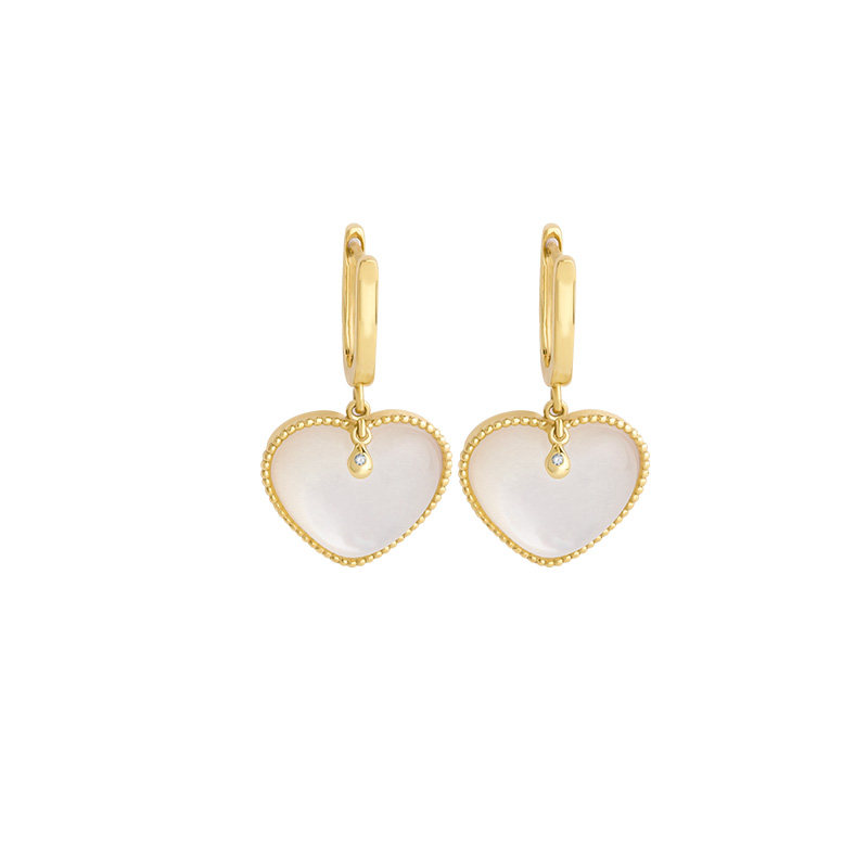Ювелирное украшение, свежие универсальные серьги в форме сердца, золото 750 пробы, простой и элегантный дизайн