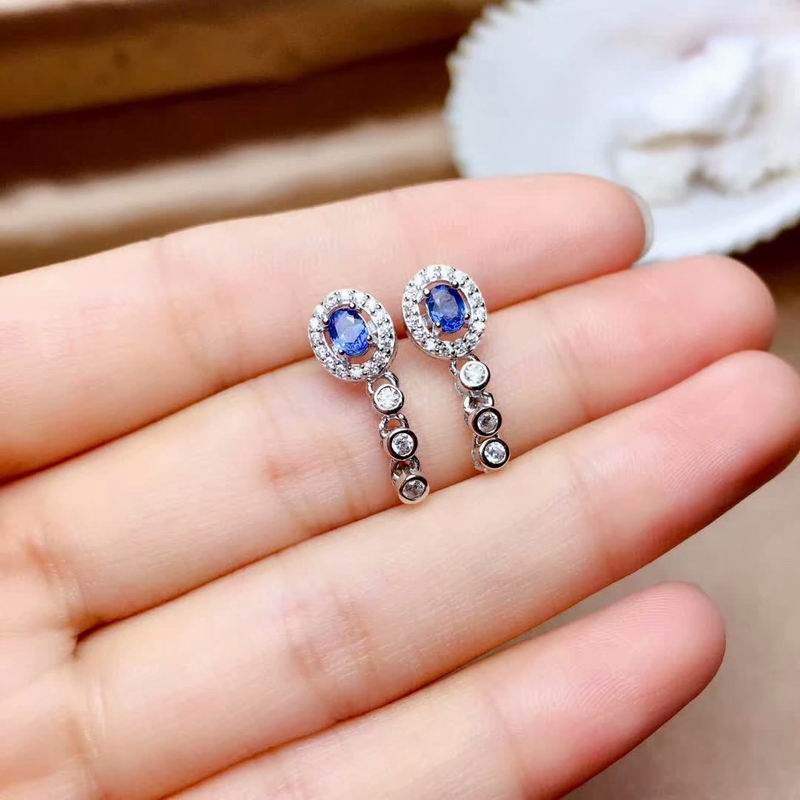 Натуральные сапфировые платиновые универсальные серьги, женский стиль, серебро 925 пробы, яркий броский стиль