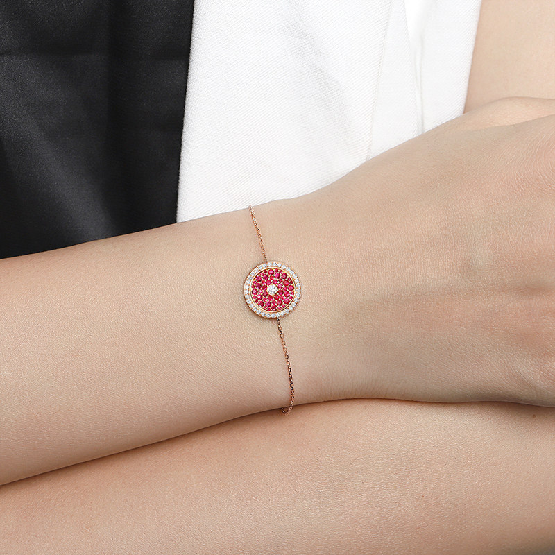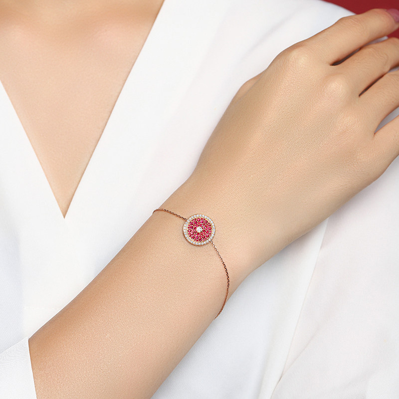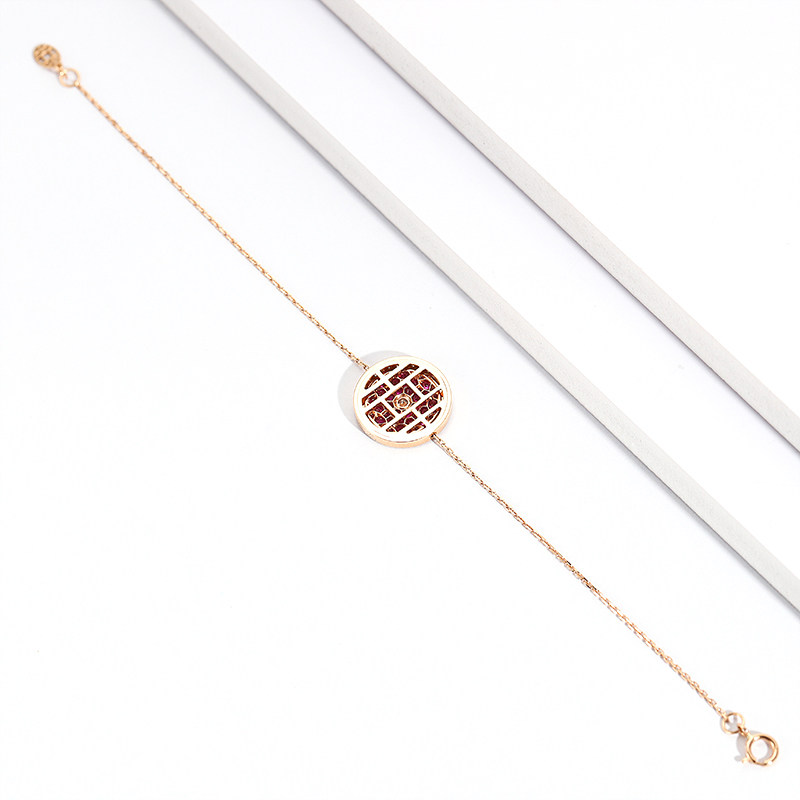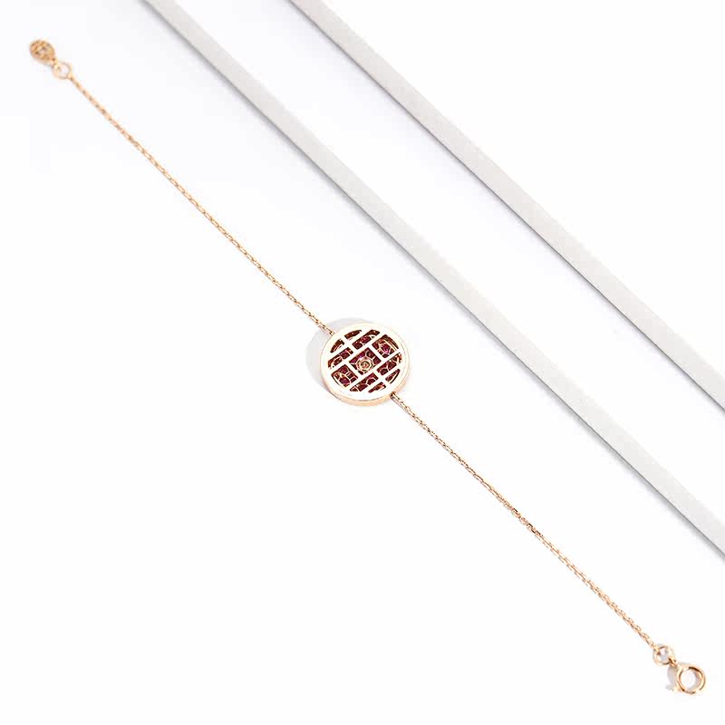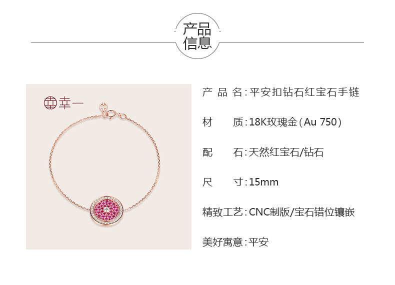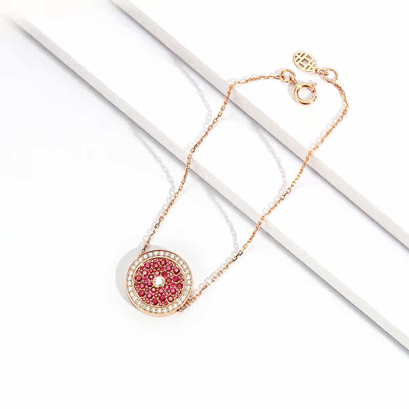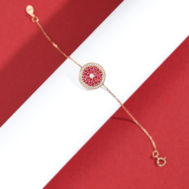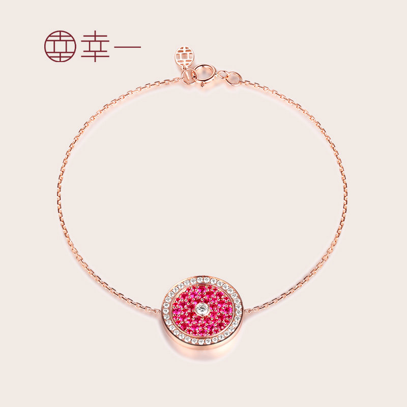 幸一珠宝 Защитный амулет, бриллиантовая пряжка, рубиновый золотой оригинальный дизайнерский браслет из натурального камня, 18 карат, розовое золото, китайский стиль