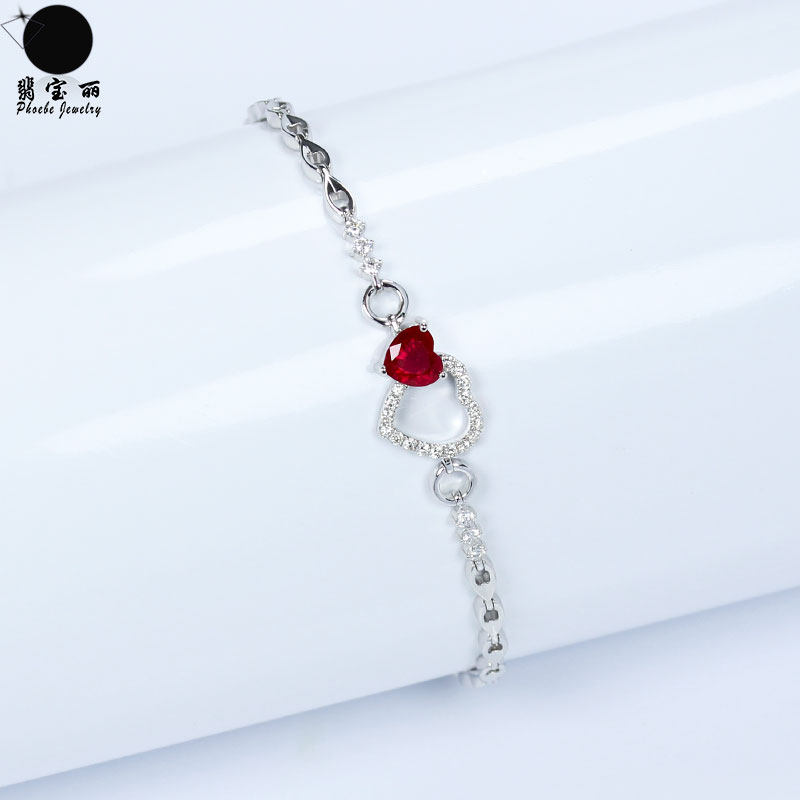 Бриллиантовый натуральный рубиновый красный женский браслет из натурального камня из Мьянмы в форме сердца, золото 18 карат, женский стиль