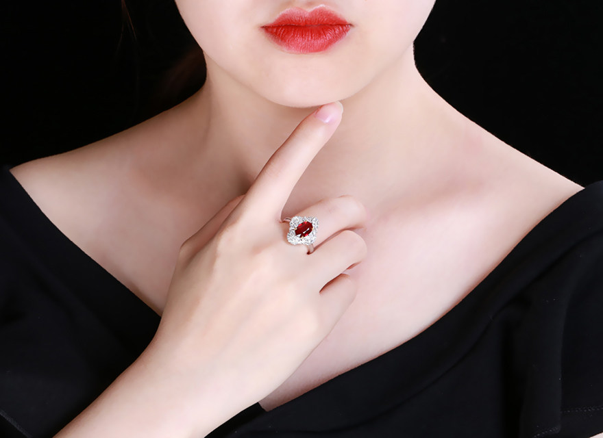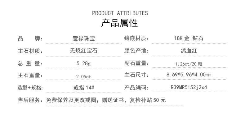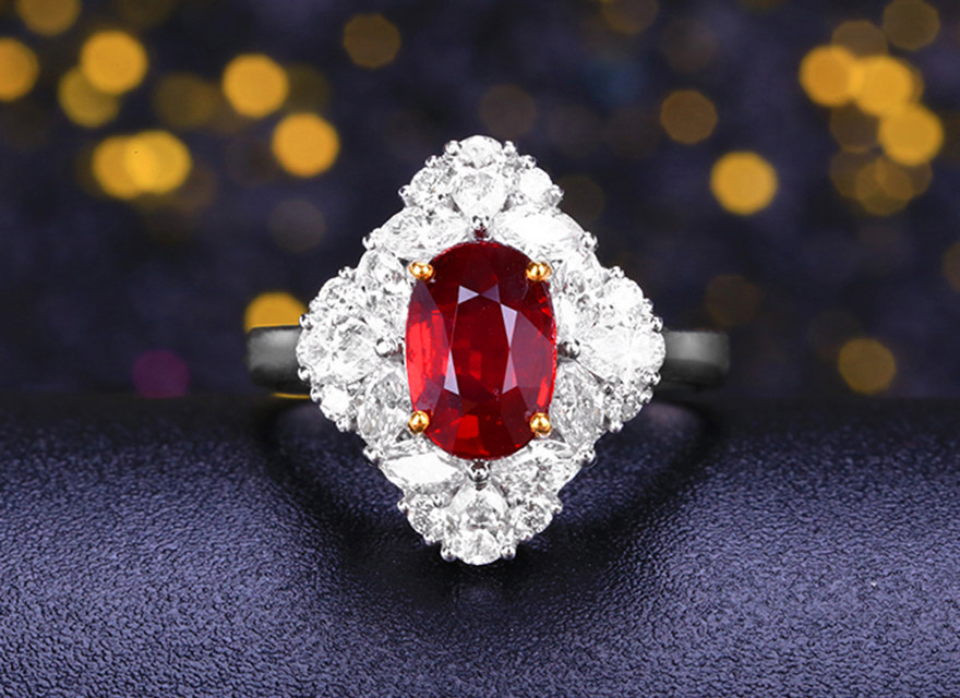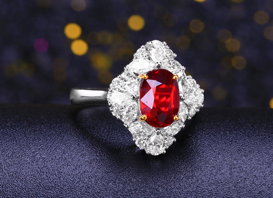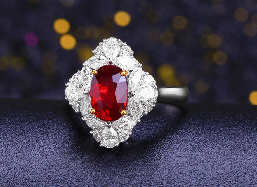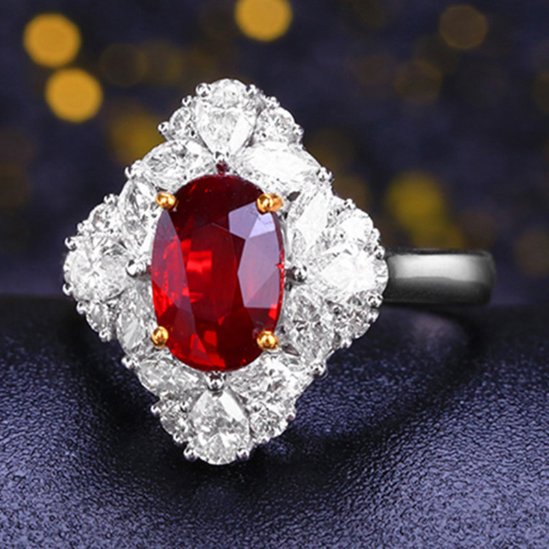 意禄 Ювелирное украшение, рубиновое бриллиантовое кольцо с камнем, 2.05 карат, золото 750 пробы, (в наличии на складе)