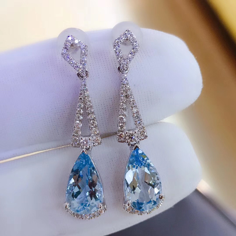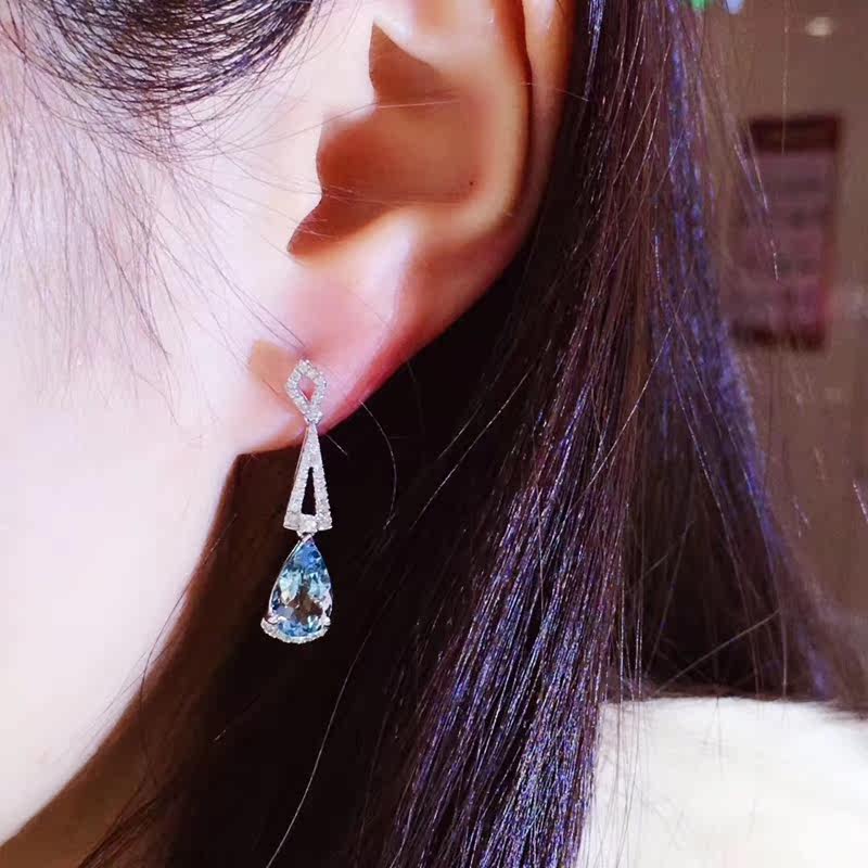 Серьги из натурального синего сокровища 18 тыс. Золотого инкрустации кристаллического прозрачного цвета, яркий, изысканный, роскошный и уникальный общий вес 3,59 г; основной камень: 2,905 -караОсновной размер камня: 10,8*6,1; Серьги размер: 30*7; прикрепленный сертификат