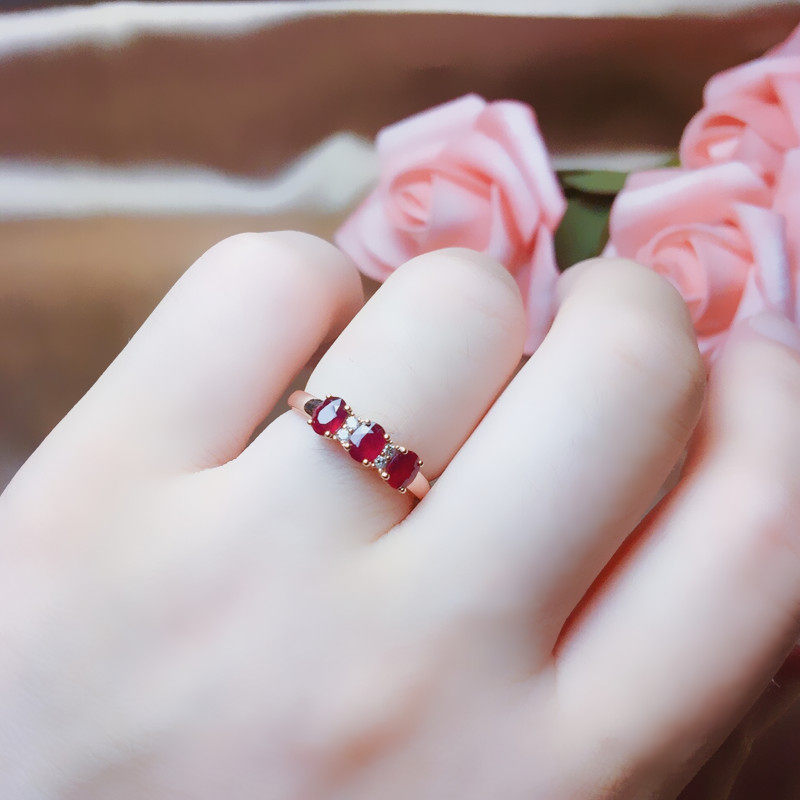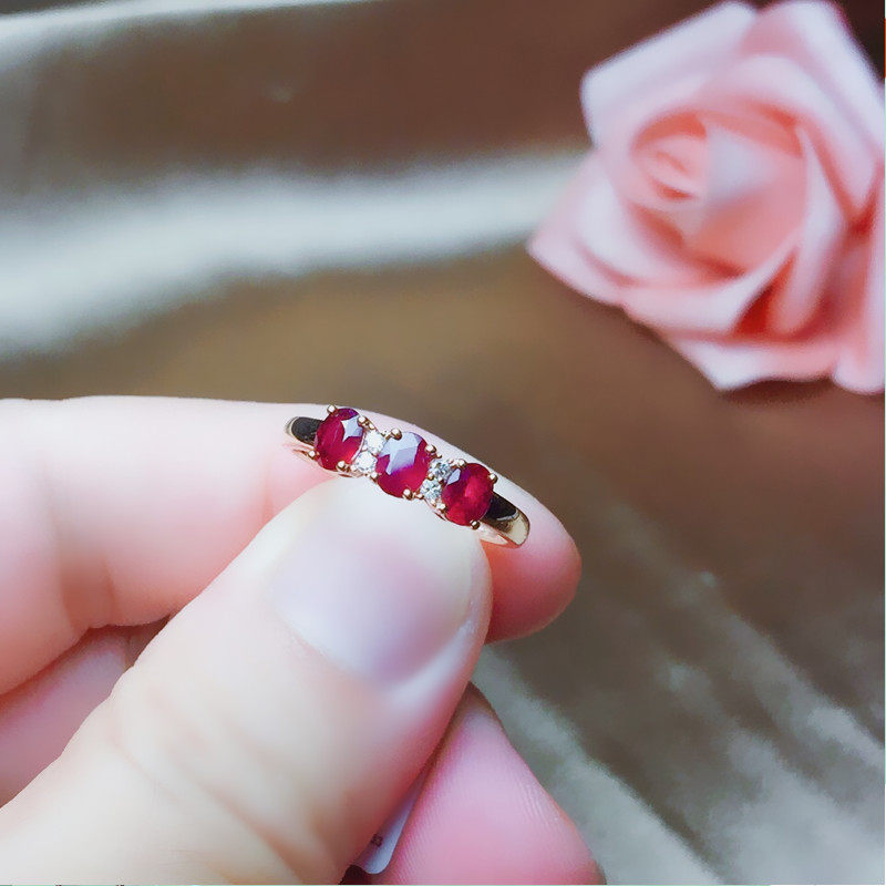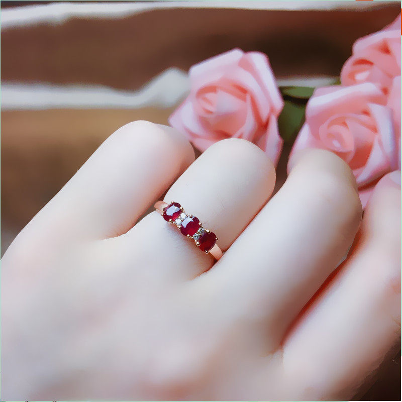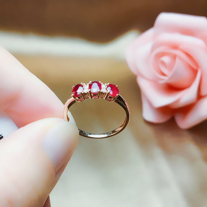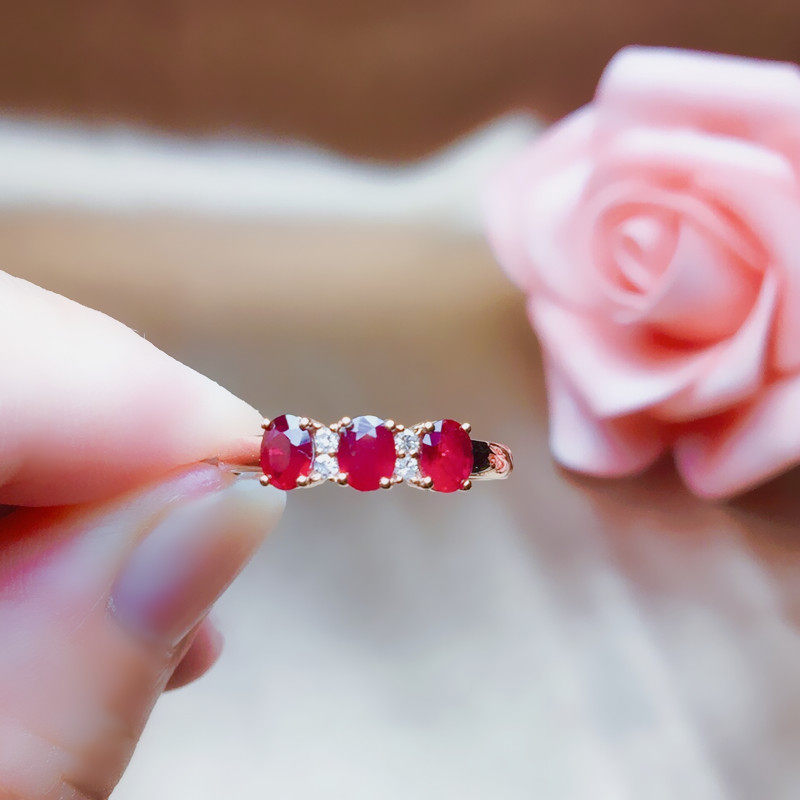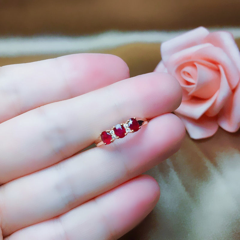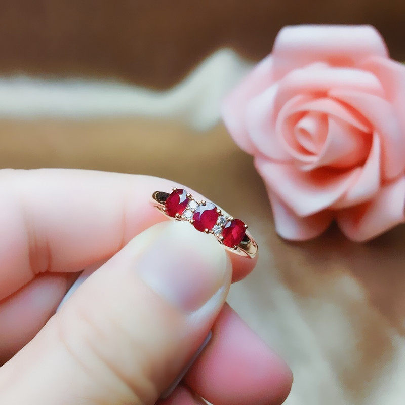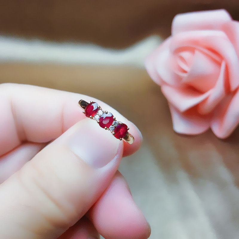 Натуральное рубиновое кольцо с камнем, бриллиантовая золотая свежая инкрустация камня, женский стиль, золото 18 карат, розовое золото
