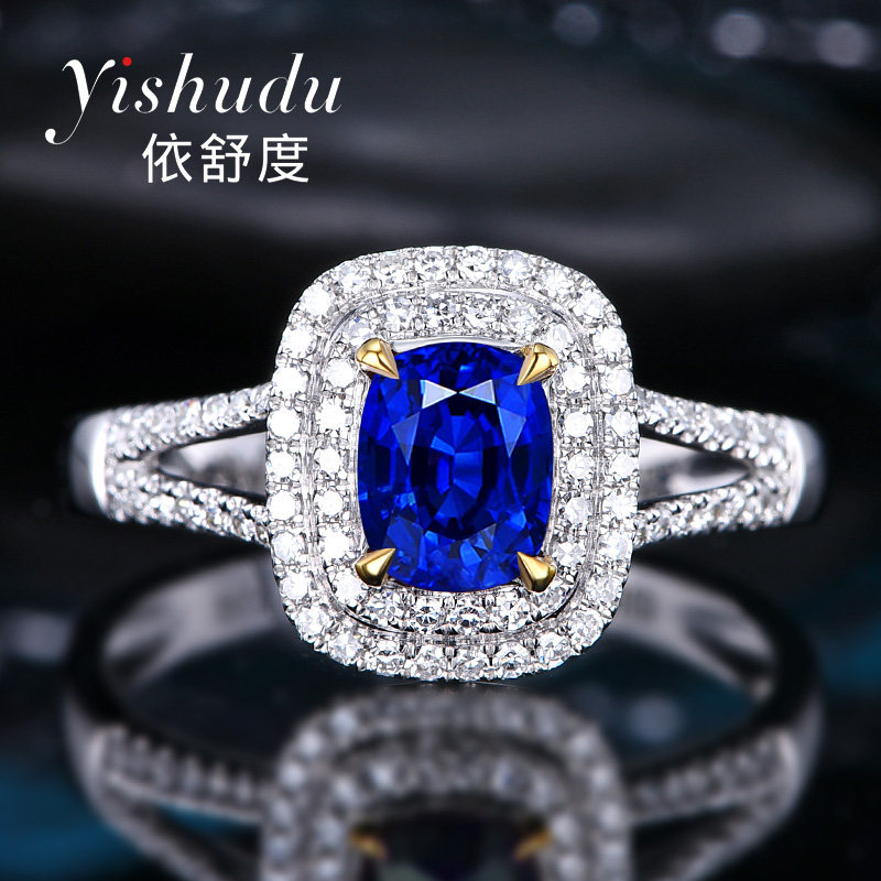依舒度 Натуральное сапфировое кольцо с камнем, бриллиантовая инкрустация камня, золото 750 пробы, делается под заказ