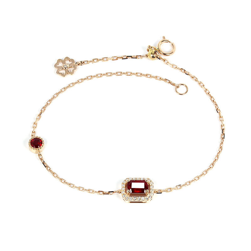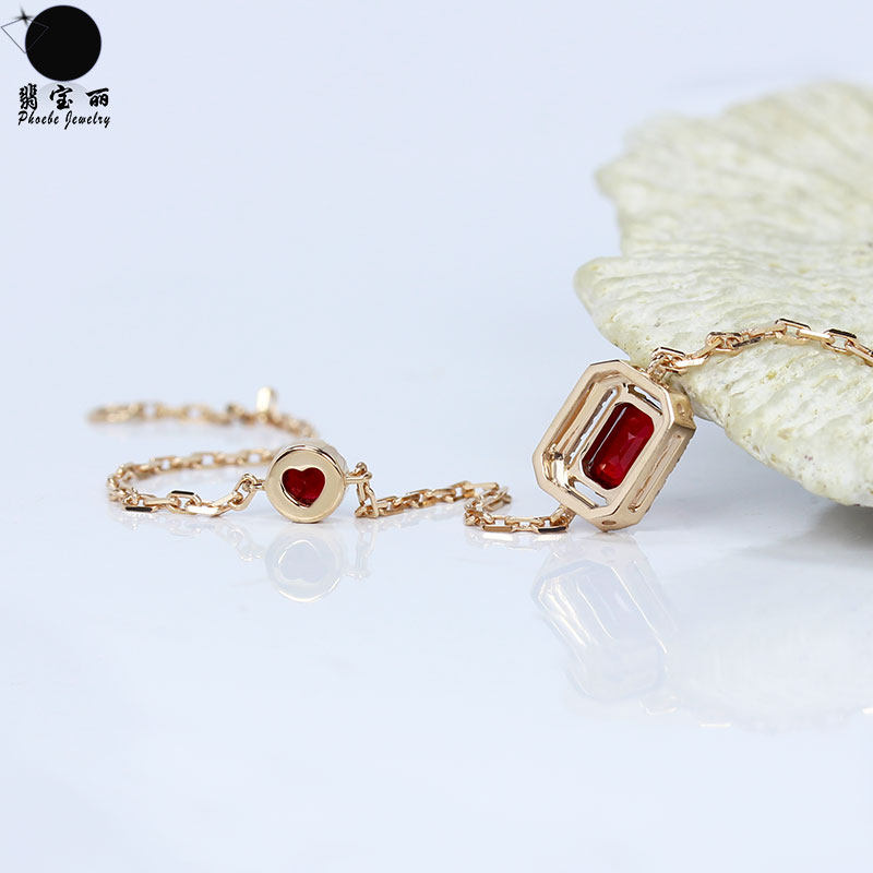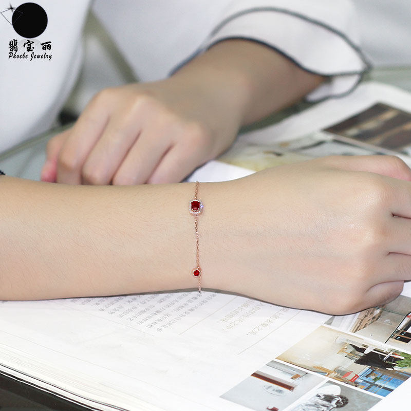 Золотой натуральный квадратный рубиновый красный бриллиантовый регулируемый браслет из натурального камня, 18 карат, розовое золото, с драгоценным камнем