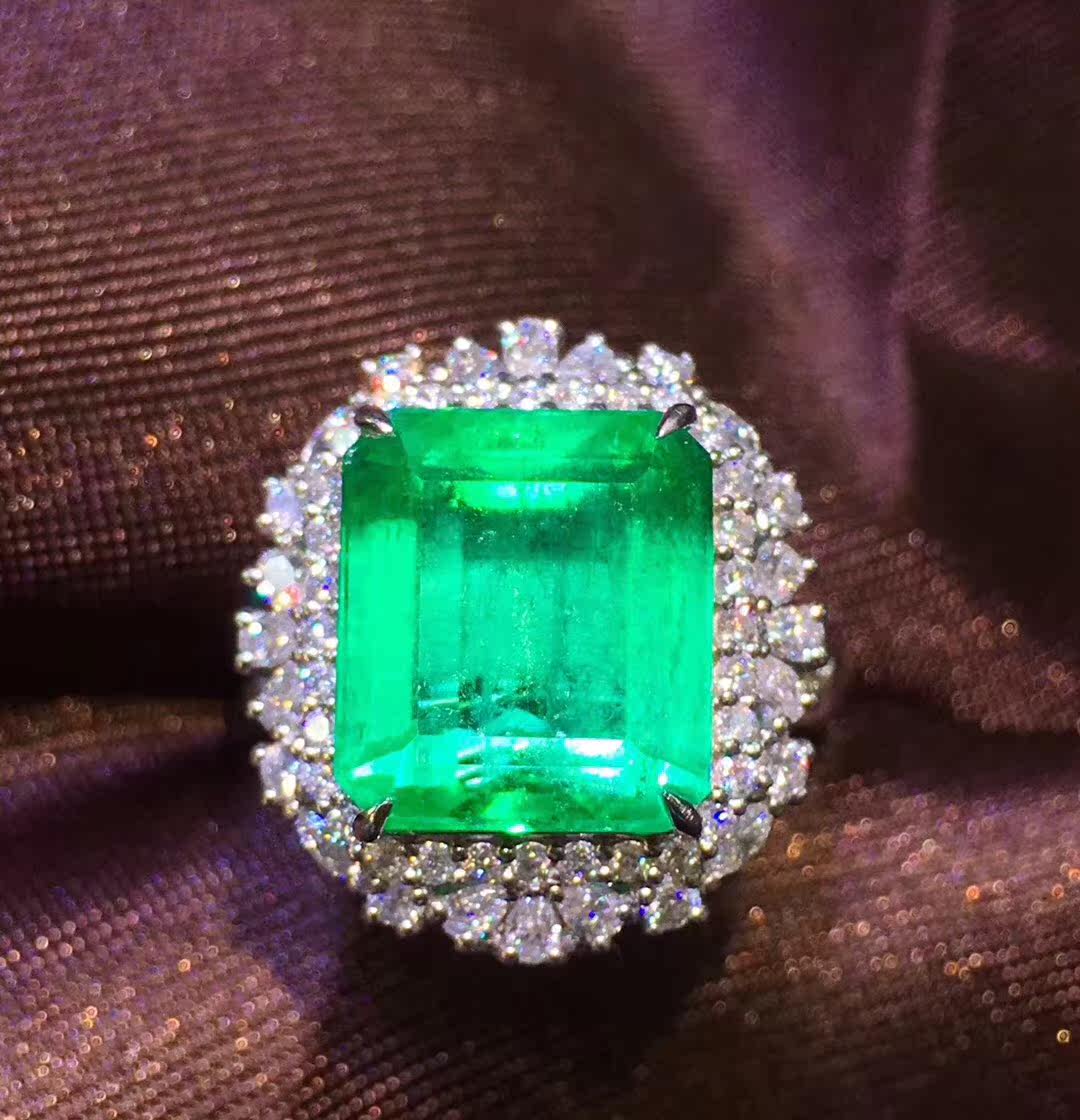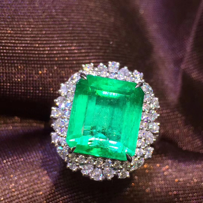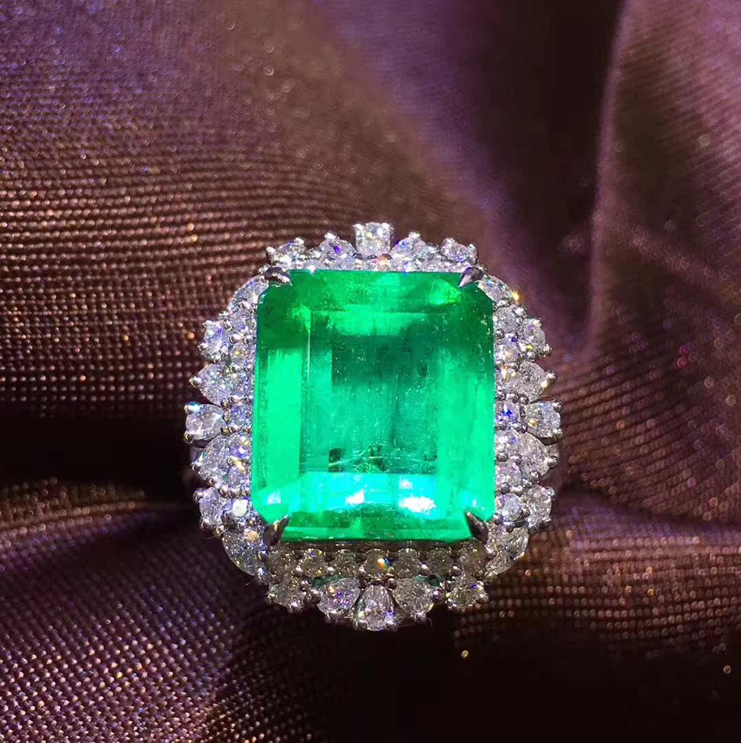Природное изумрудное кольцо подвесное подвесное подвесное подвесное кольцо Двухцелевое модель 18K Золото, инкрустированная южноафриканскими бриллиантами, прозрачными кристаллами, богатыми и чистыми цветами, модными и изысканными и уникальными спецификациями: 19 × 17 мм. Голый камень.