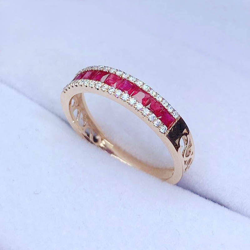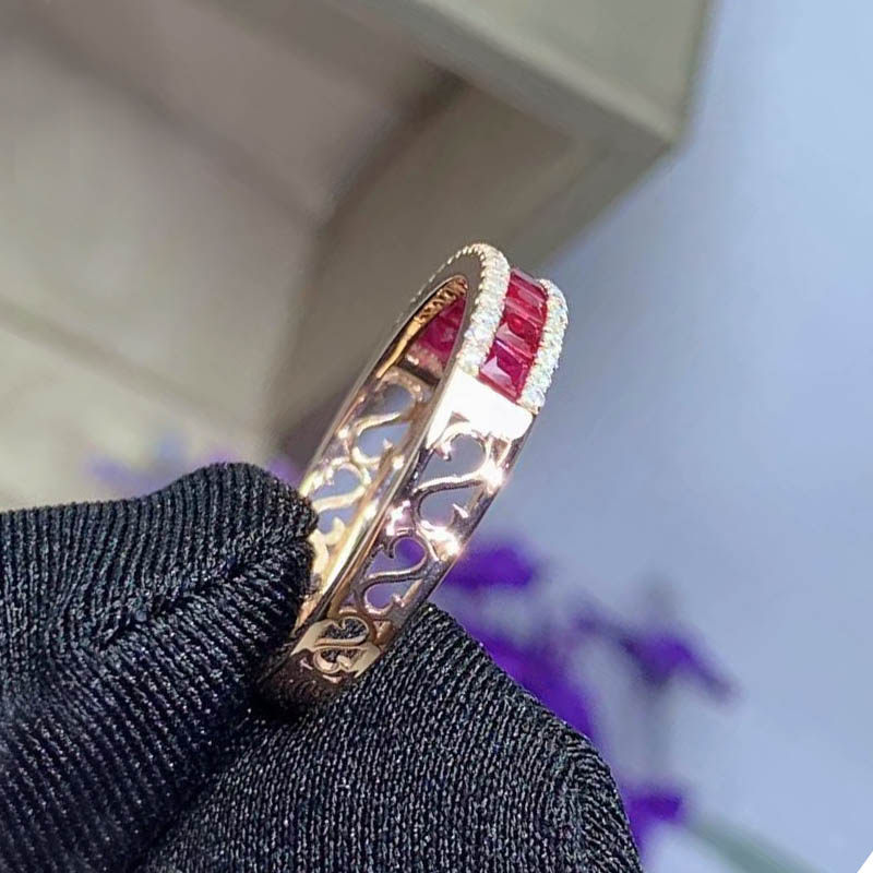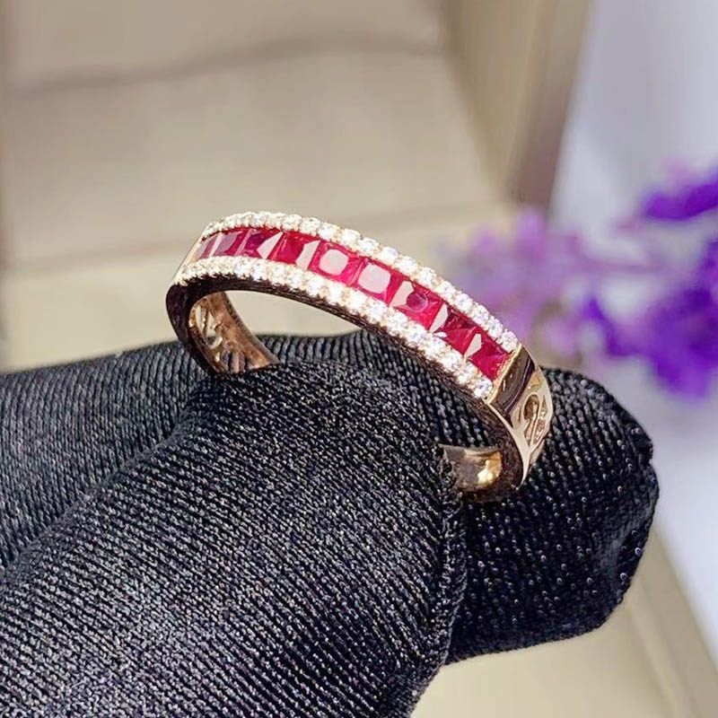 Натуральное рубиновое изысканное элегантное дизайнерское кольцо с камнем, золото 750 пробы, легкий роскошный стиль