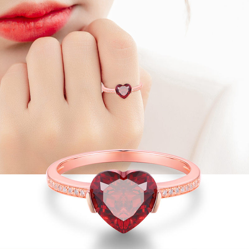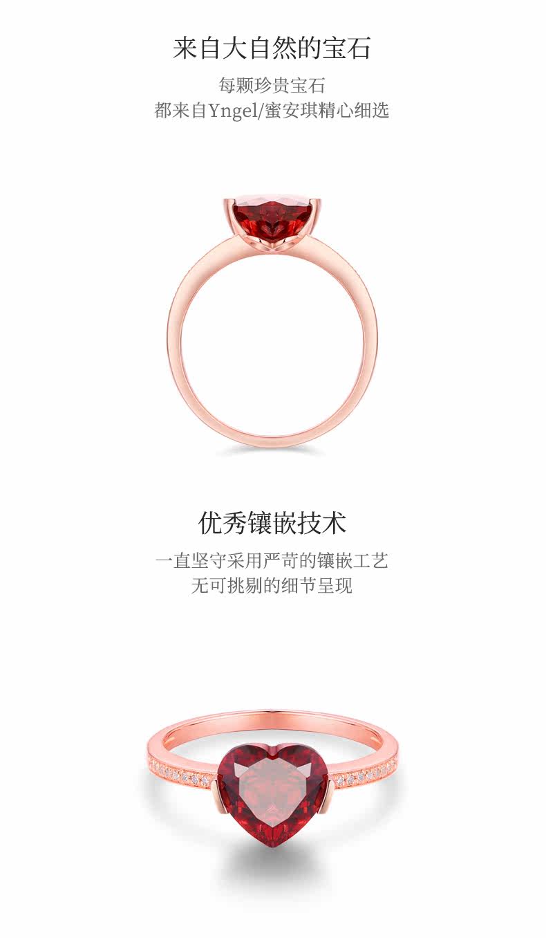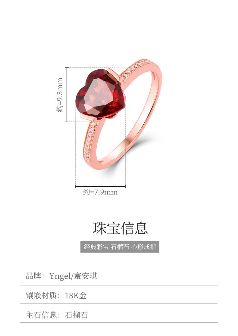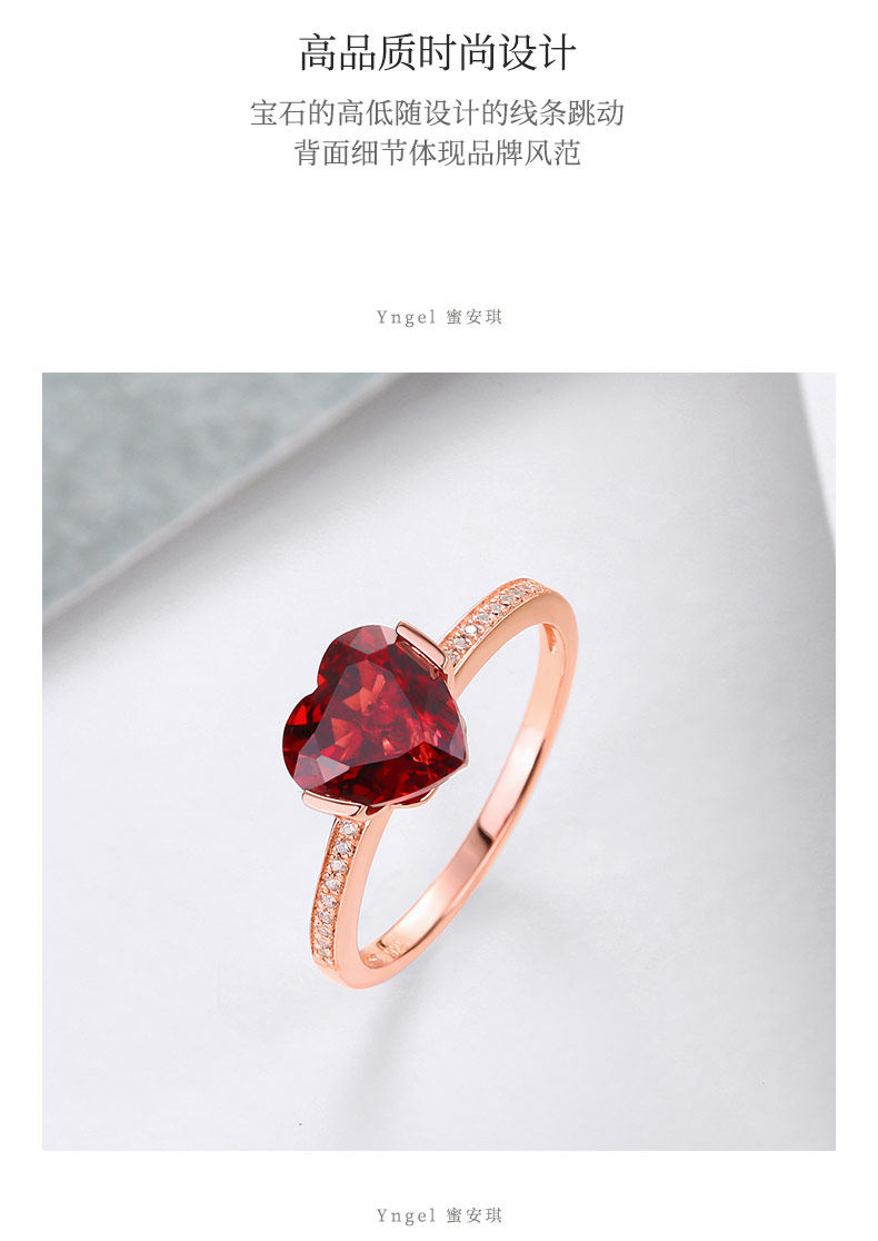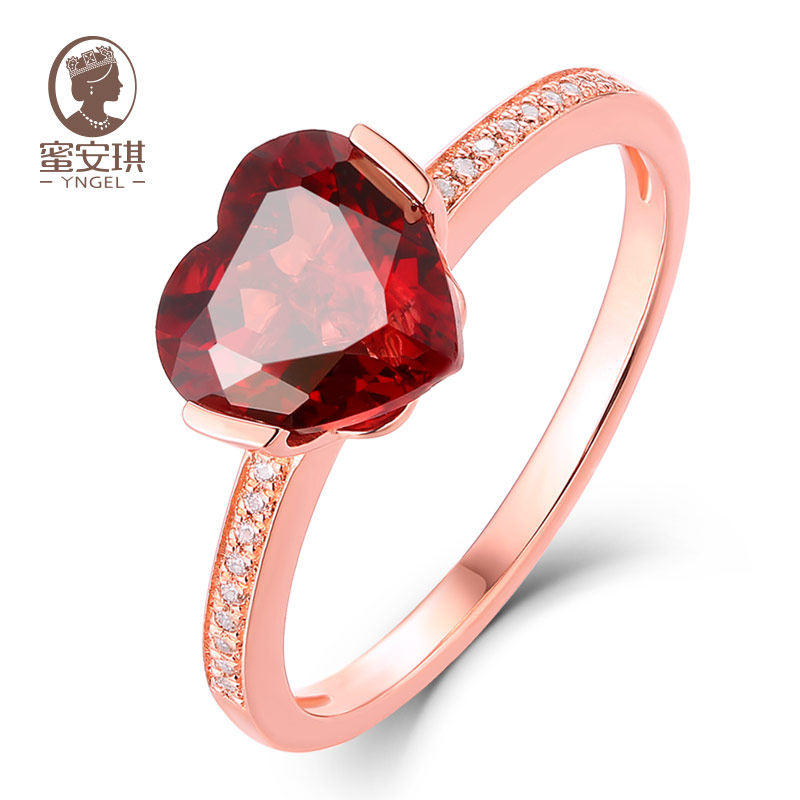 Yngel/蜜安琪 Кольцо с камнем из граната, ювелирное украшение, официальный продукт, золото 750 пробы, с драгоценным камнем, делается под заказ, подарок на день рождения