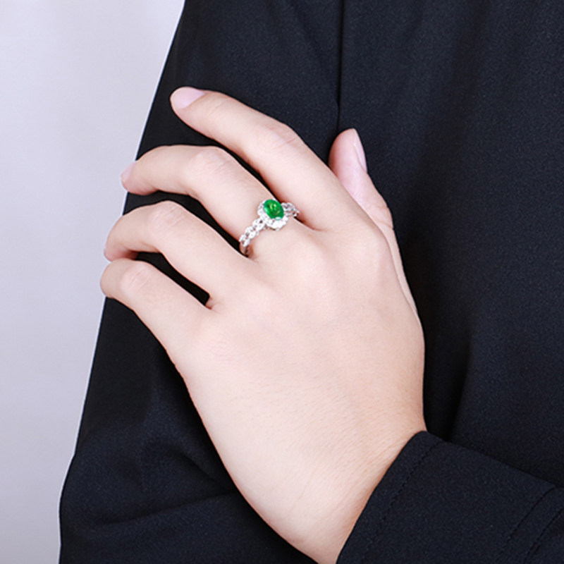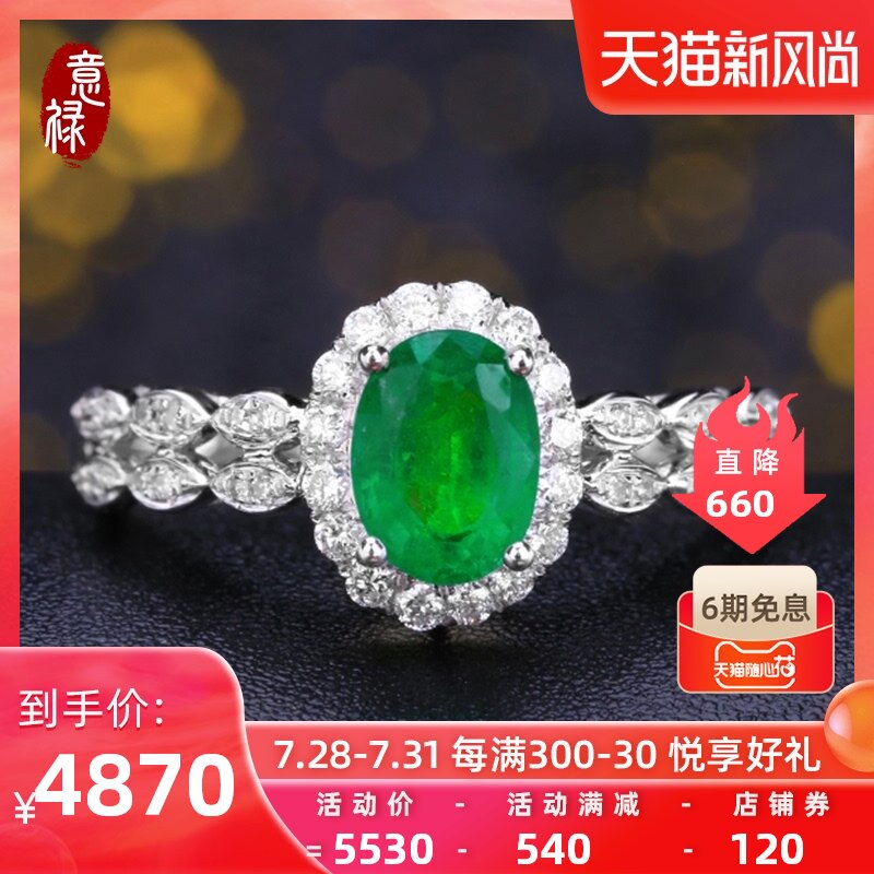 意禄 Натуральное ювелирное украшение, кольцо с камнем изумруд, бриллиантовая инкрустация камня, 1 карат, золото 750 пробы, с драгоценным камнем, (в наличии на складе)